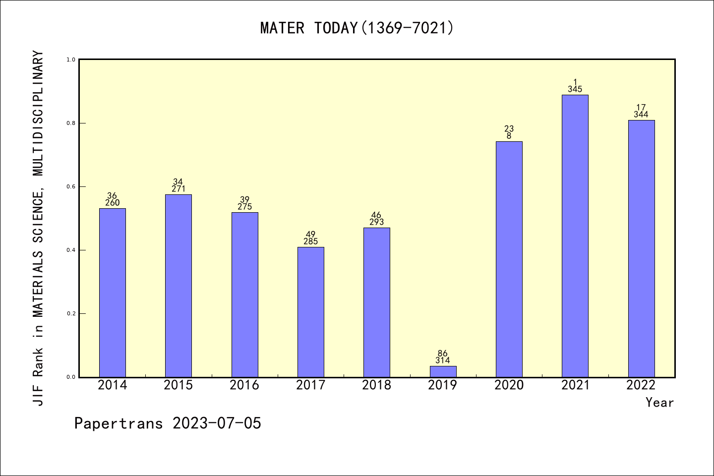 MATER TODAY图表质量排名@SCIE材料科学,多学科