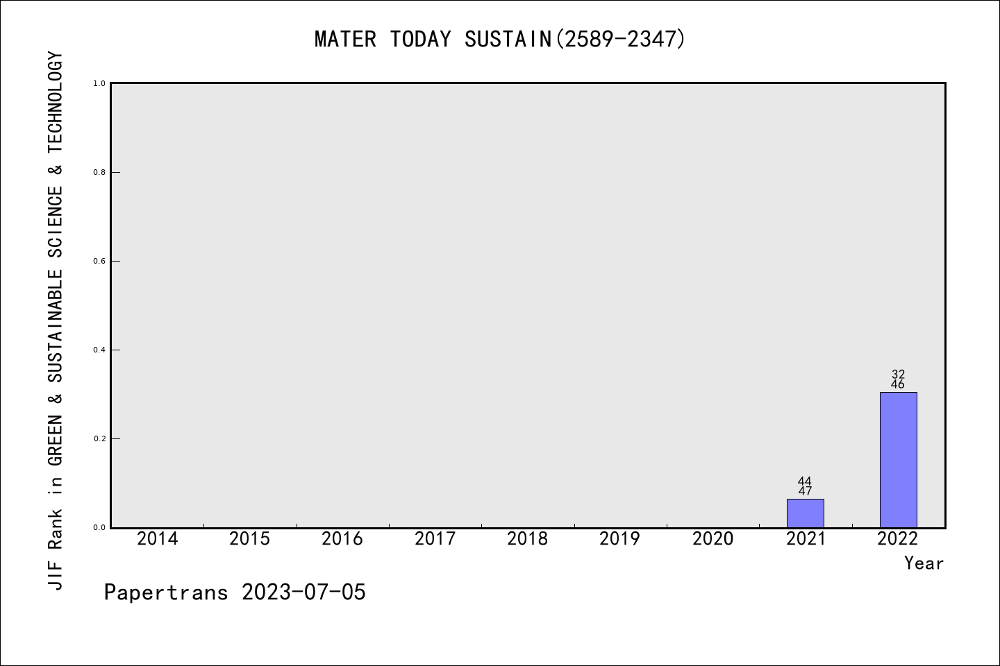 Materials Today Sustainability拒稿率学科排名@SCIE绿色与可持续的科学技术