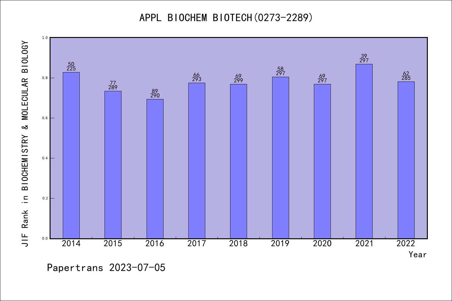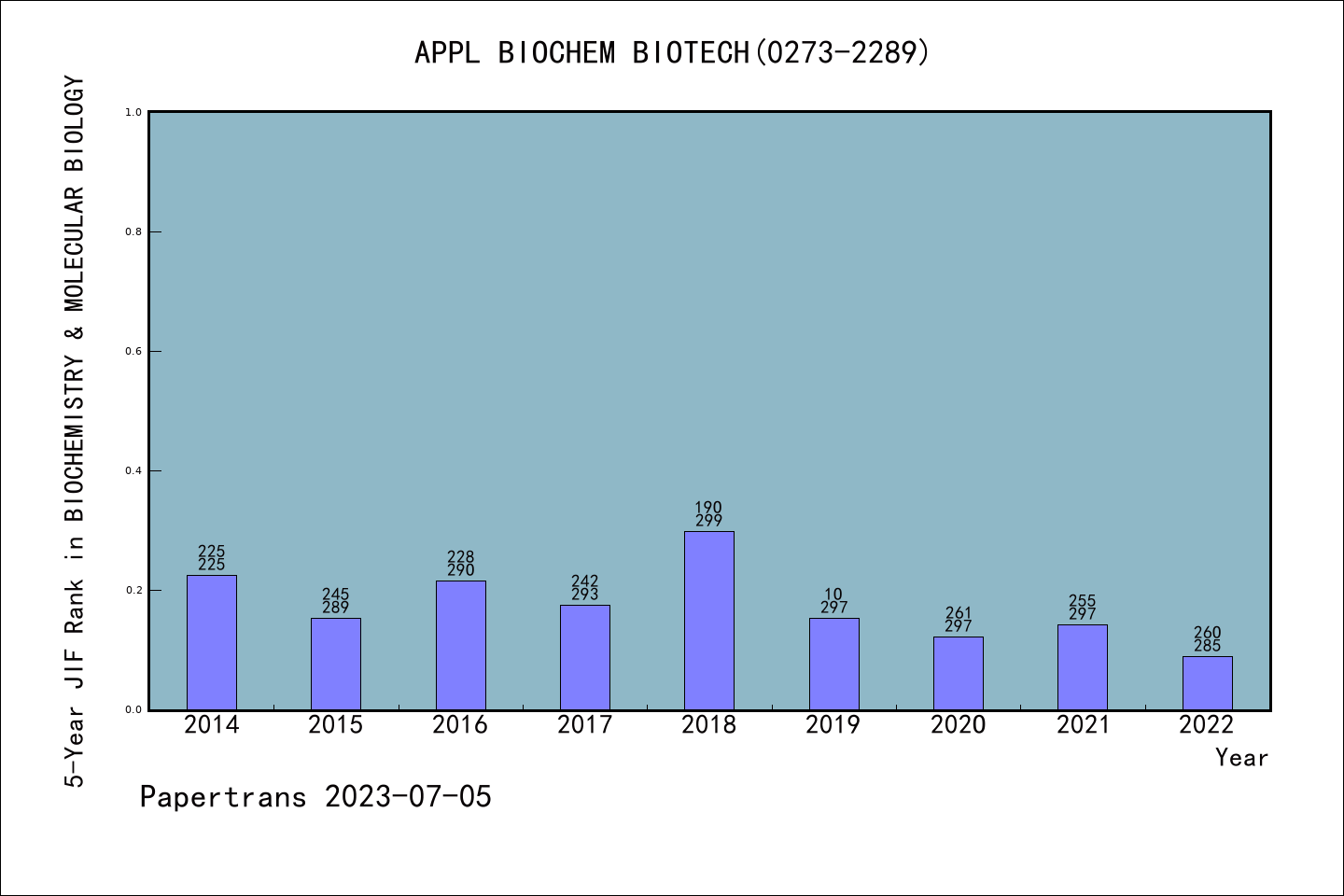 APPL BIOCHEM BIOTECH图表质量排名@SCIE生物化学与分子生物学