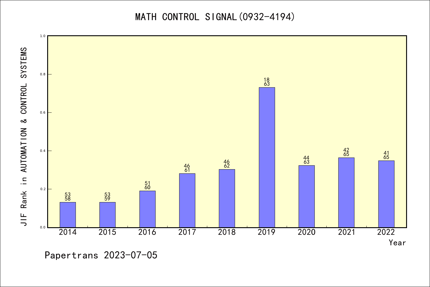 SCIE期刊MATHEMATICS OF CONTROL SIGNALS AND SYSTEMS历年派博系数(Pindex)
