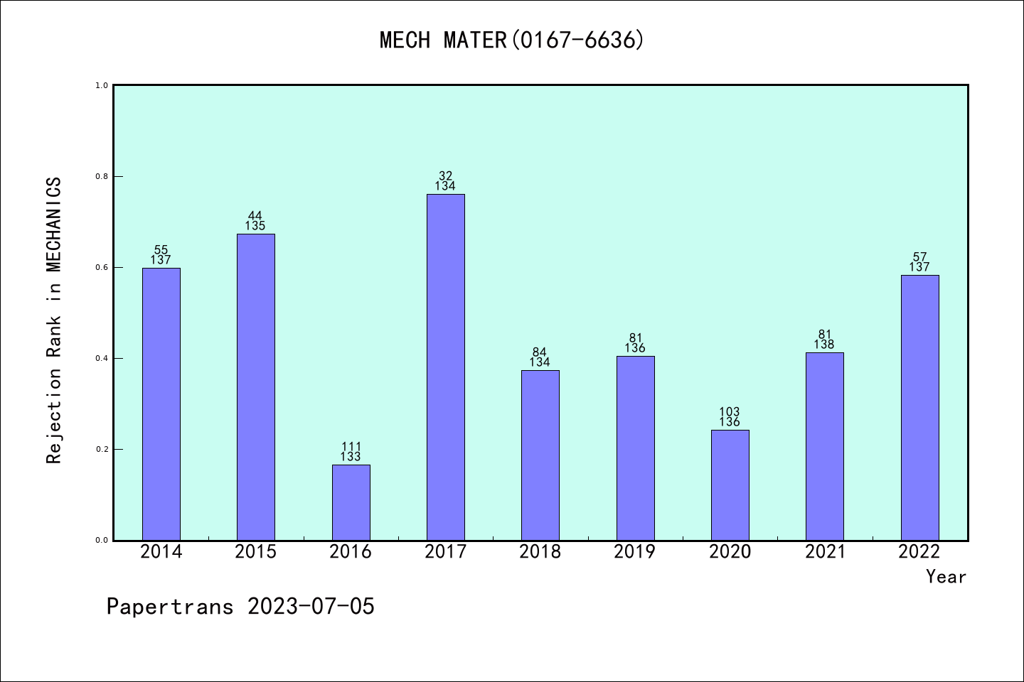 SCIE期刊MECHANICS OF MATERIALS历年拒稿占比