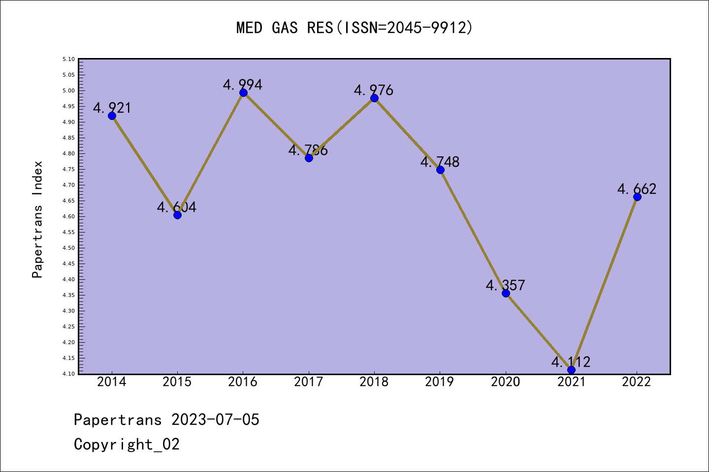 派博 系数 | ESCI期刊Medical Gas Research历年派博系数(Pindex)