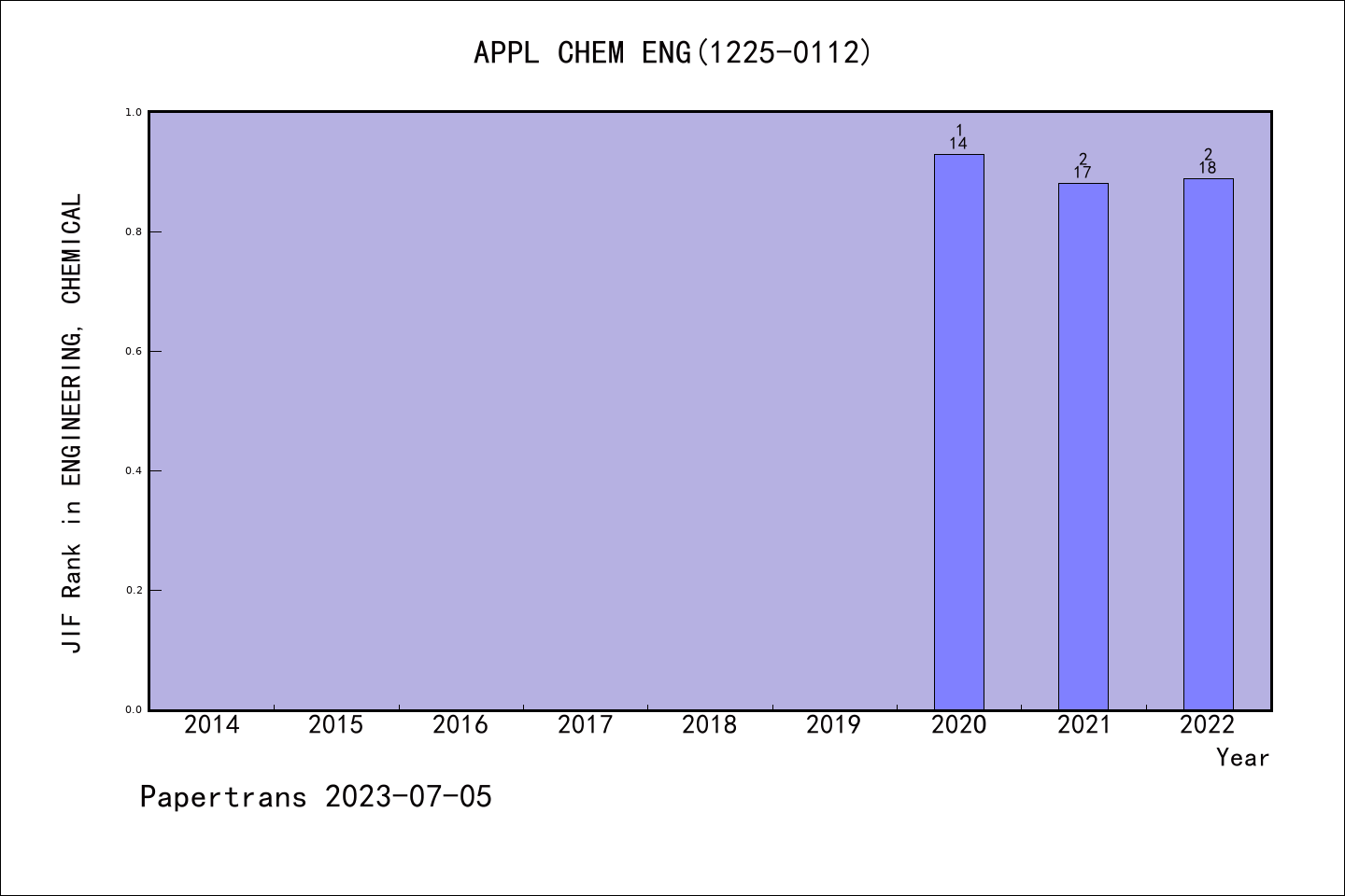 | APPL CHEM ENG图表质量排名@ESCI工程、化学