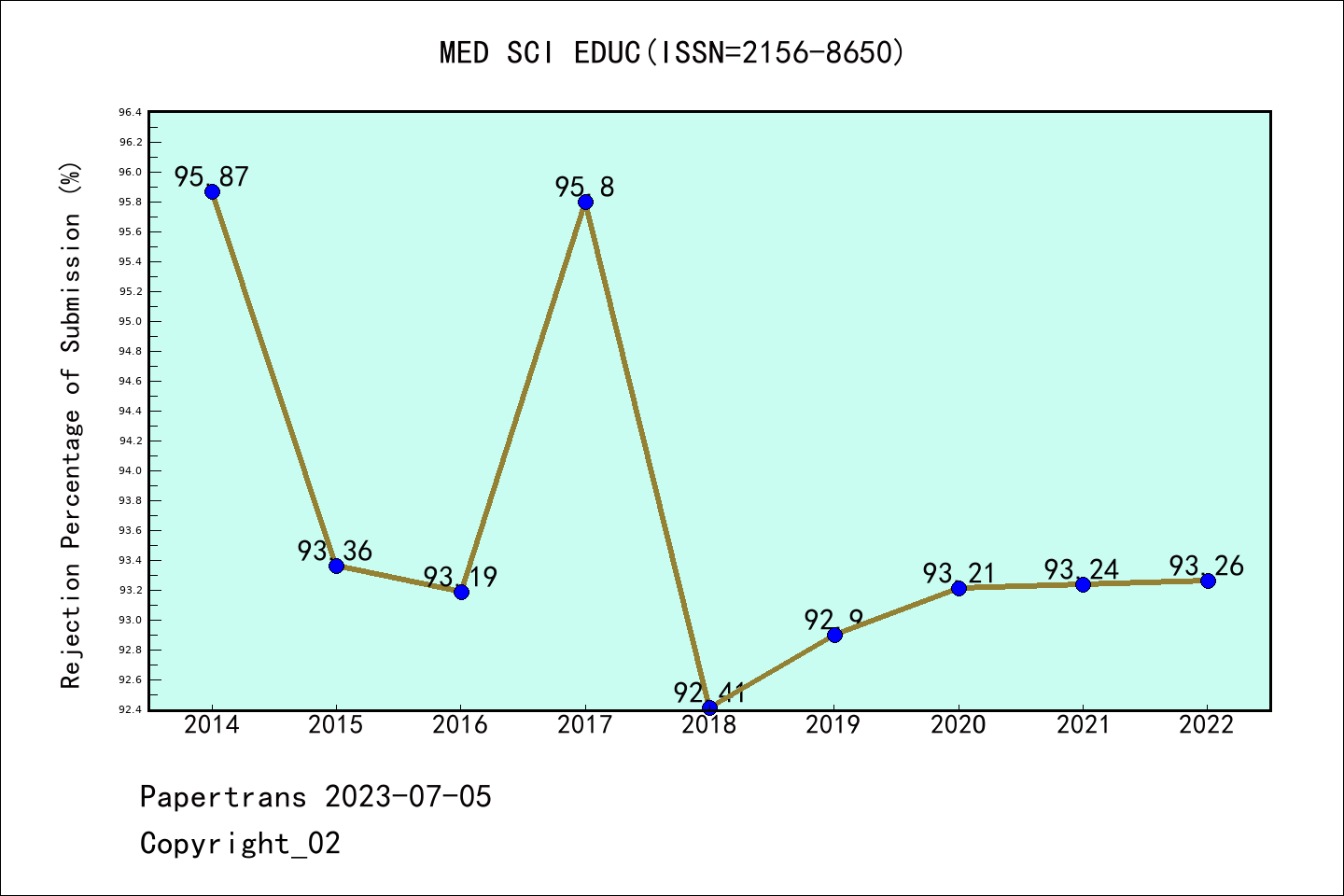 ESCI期刊Medical Science Educator历年拒稿占比