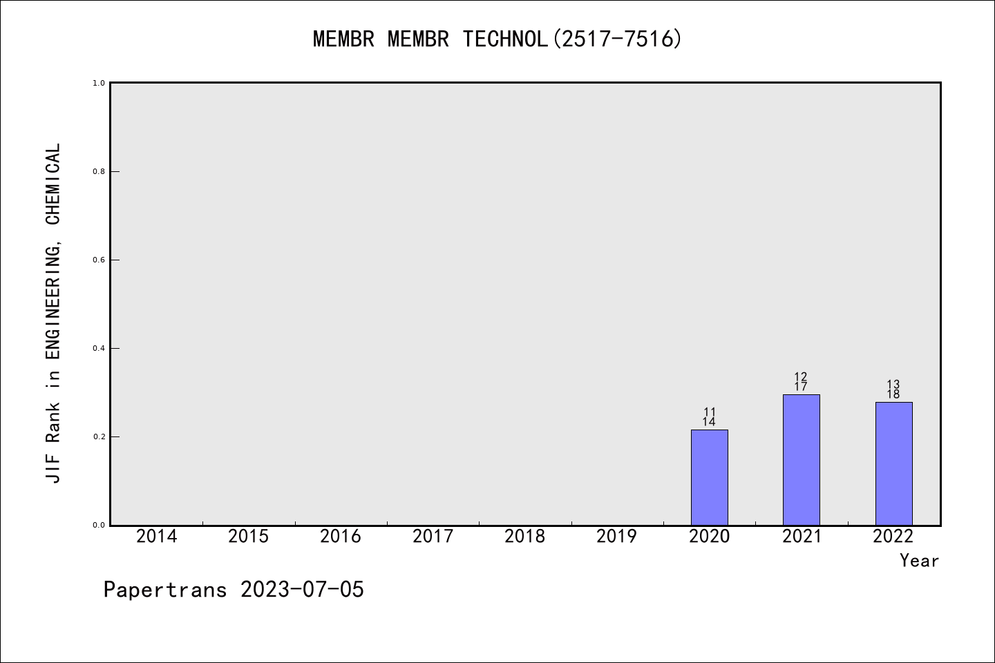 MEMBR MEMBR TECHNOL图表质量排名@ESCI工程、化学