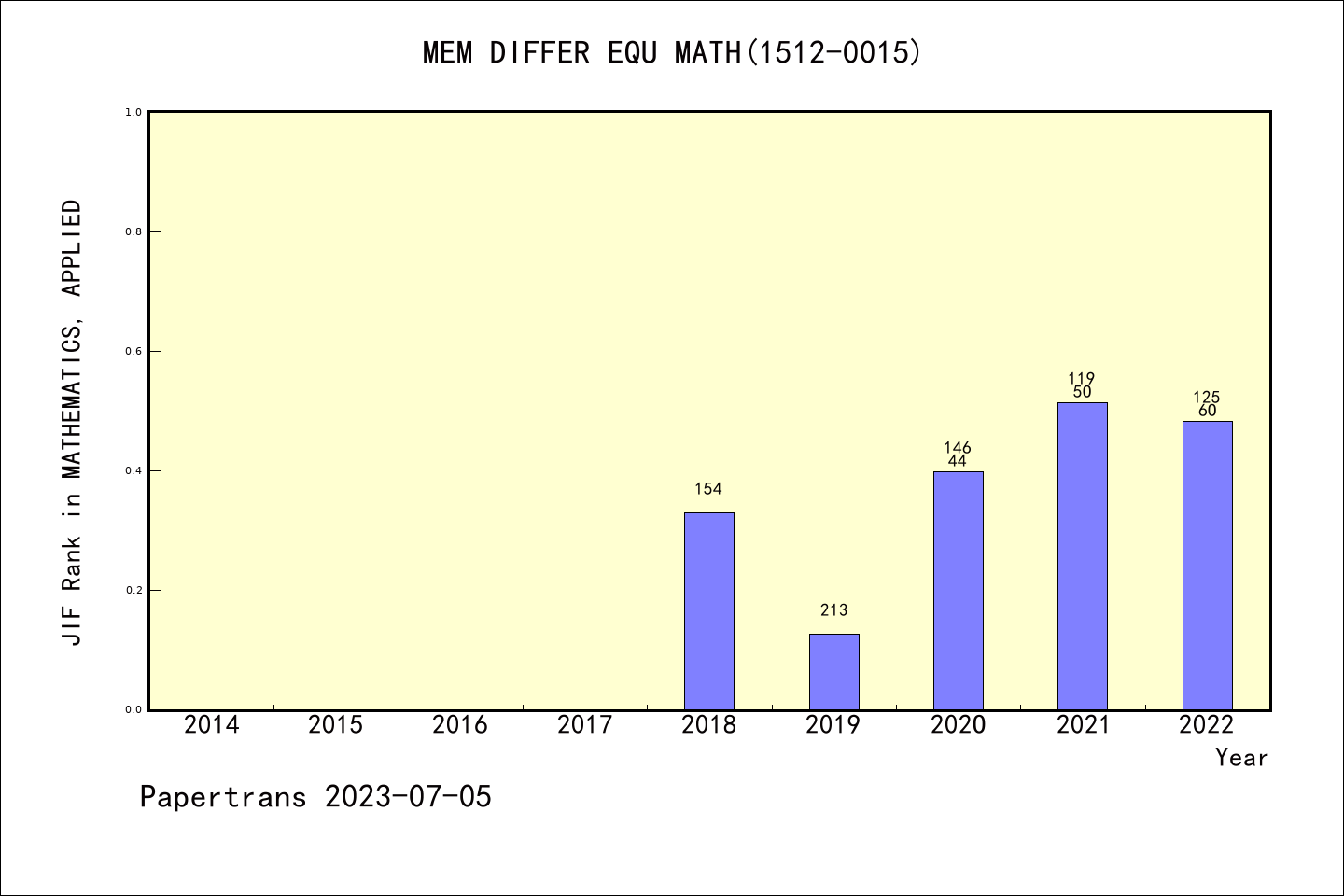 ESCI期刊Memoirs on Differential Equations and Mathematical Physics历年派博系数(Pindex)