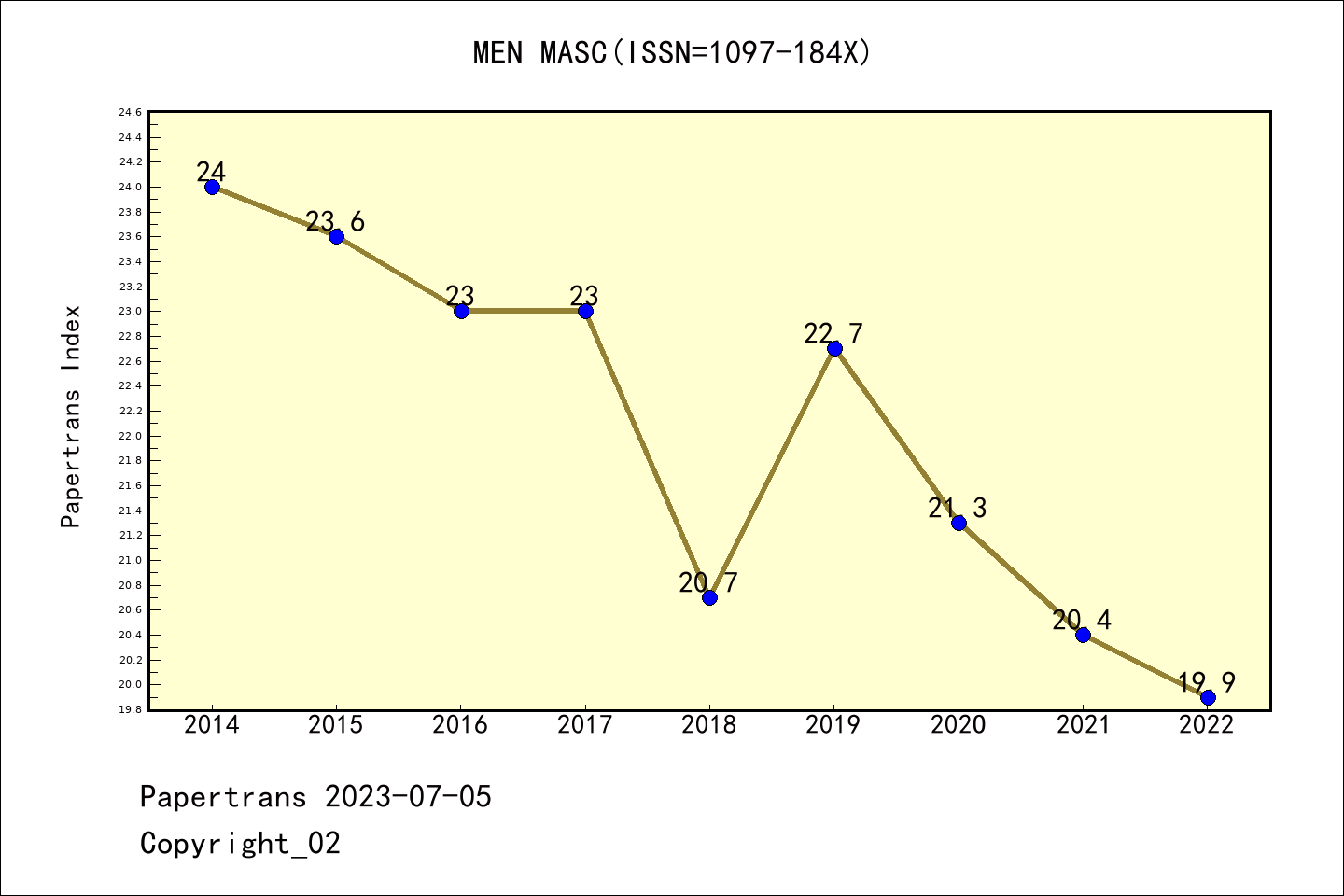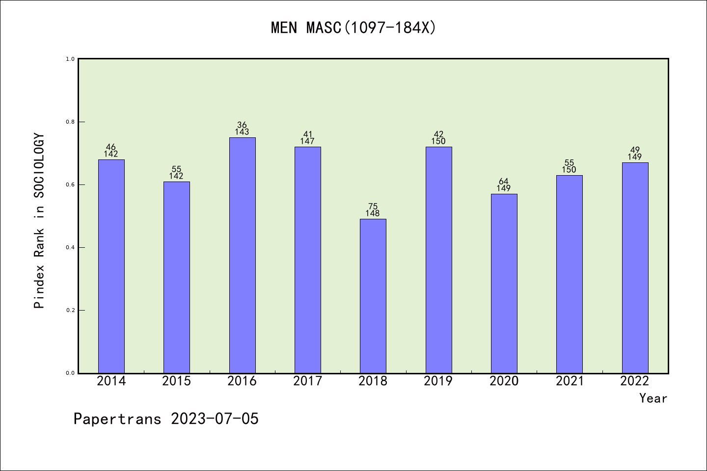 SSCI期刊Men and Masculinities历年派博系数(Pindex)