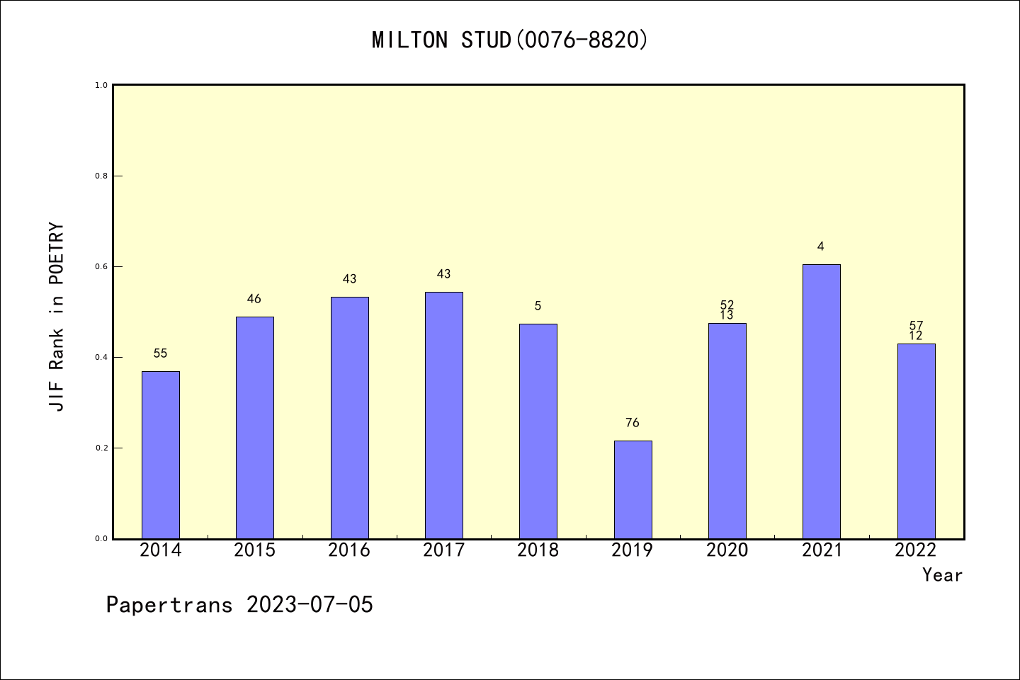 Milton Studies派博系数(Pindex)学科排名@AHCI诗歌