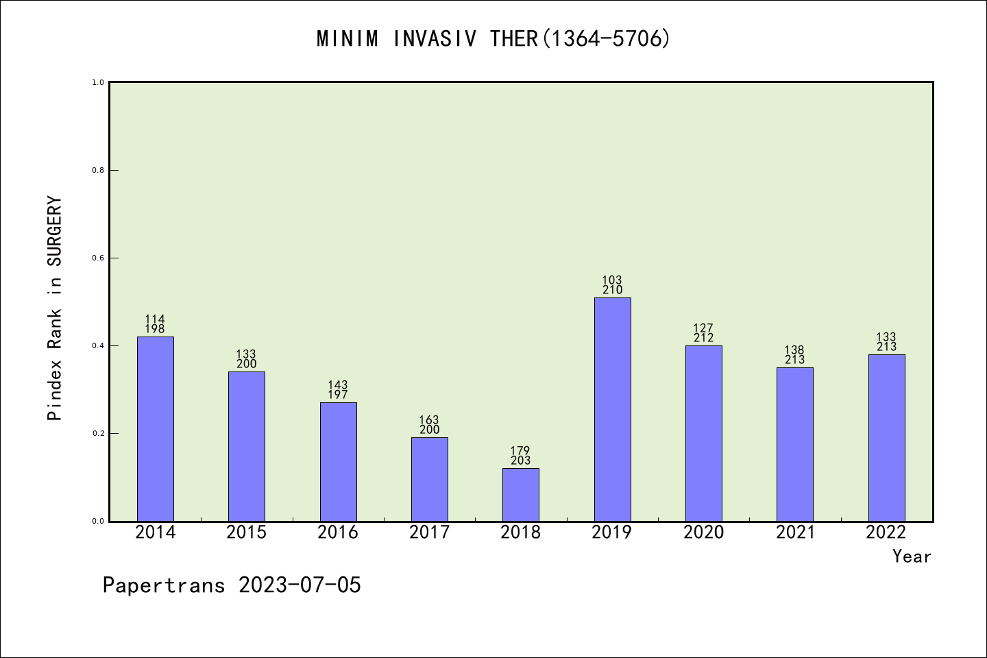 MINIMALLY INVASIVE THERAPY & ALLIED TECHNOLOGIES派博系数(Pindex)学科排名@SCIE外科手术