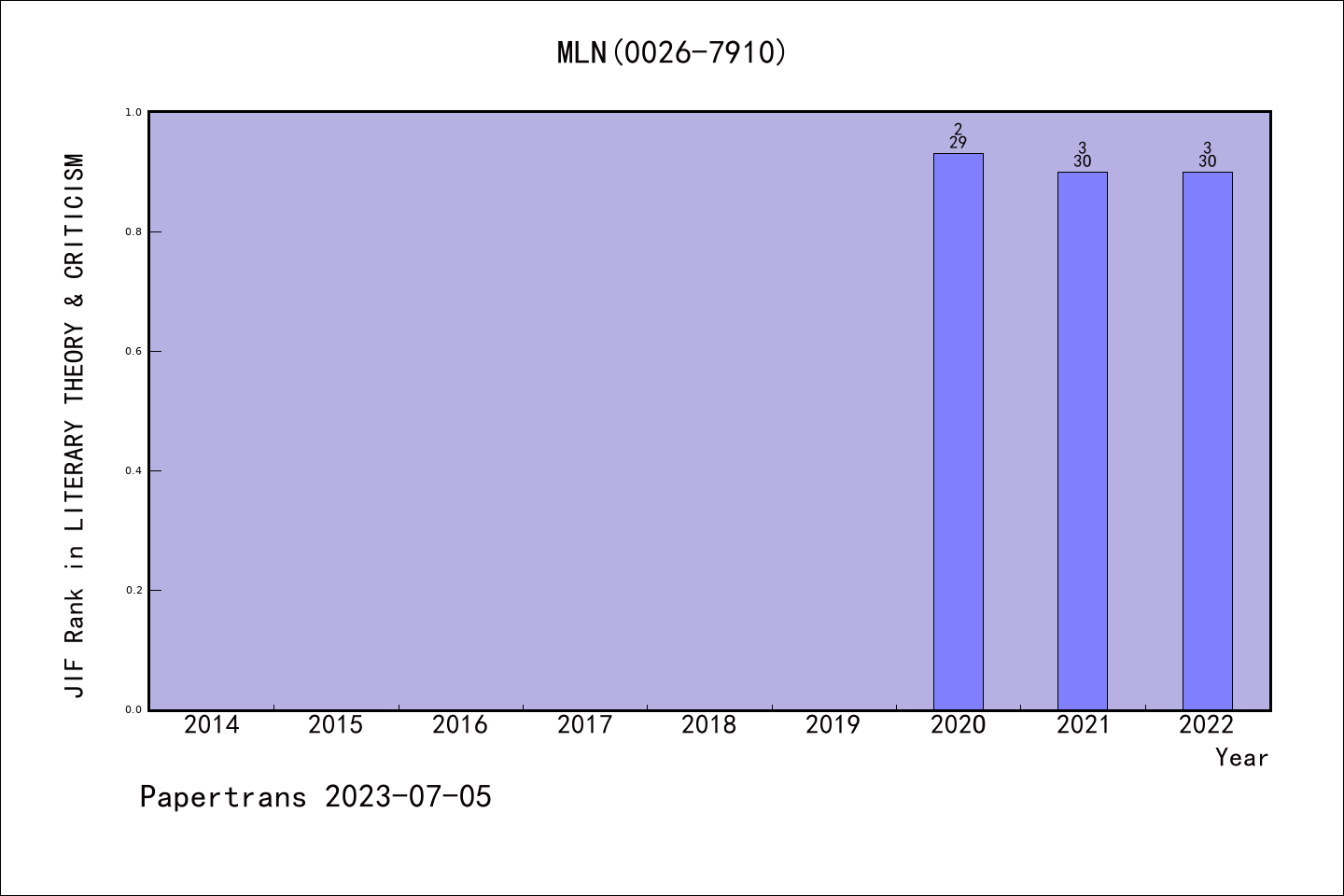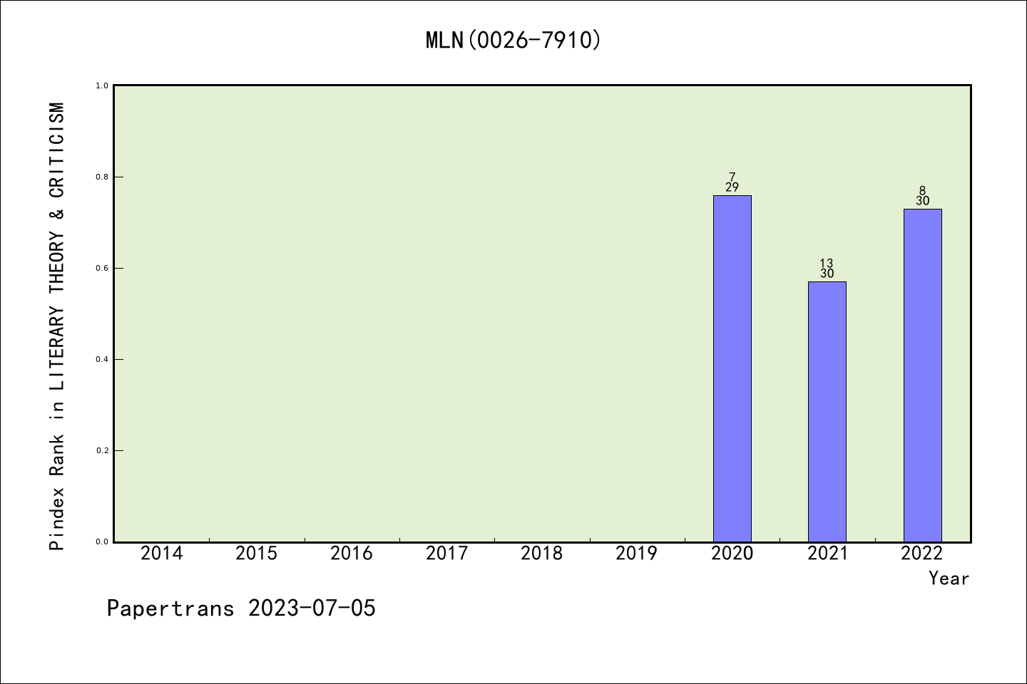MLN派博系数(Pindex)学科排名@AHCI文学理论与批评