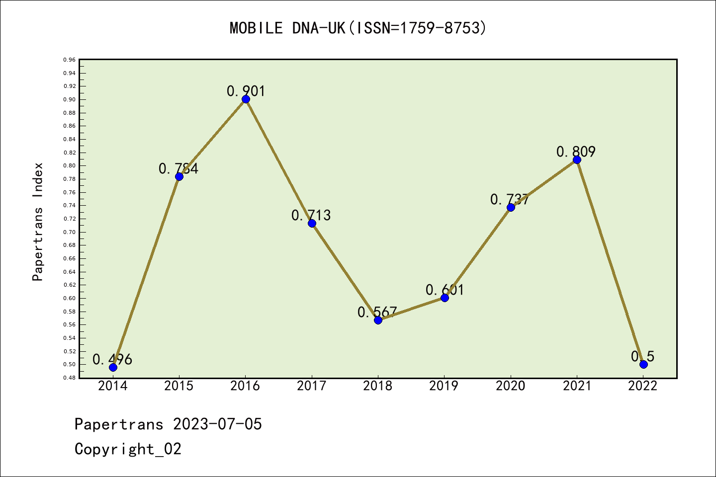 SCIE期刊Mobile DNA历年派博系数(Pindex)
