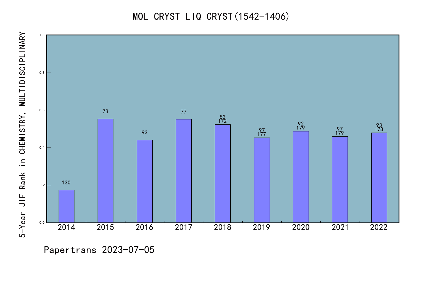 MOLECULAR CRYSTALS AND LIQUID CRYSTALS派博系数(Pindex)学科排名@SCIE化学及交叉学科