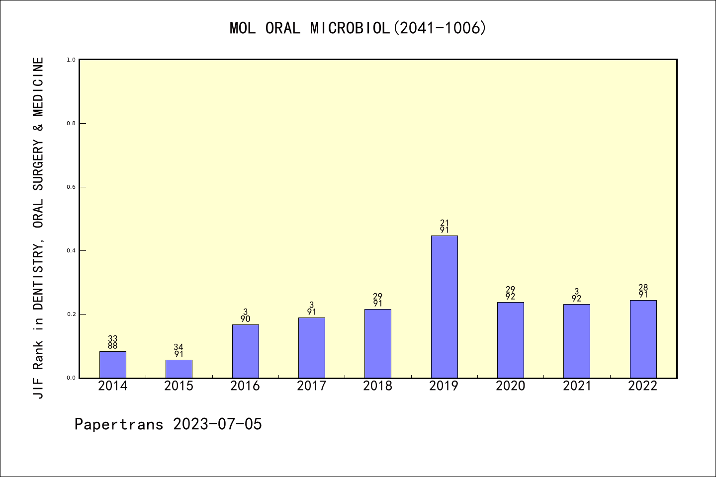 Molecular Oral Microbiology派博系数(Pindex)学科排名@SCIE牙科口腔外科医学