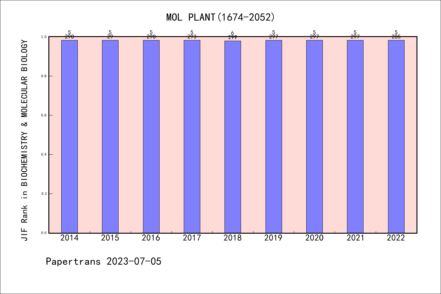 MOL PLANT图表质量排名@SCIE生物化学与分子生物学