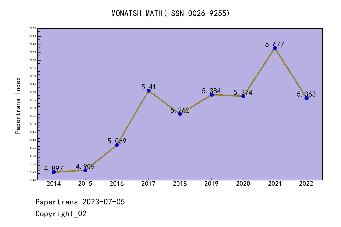 SCIE期刊MONATSHEFTE FUR MATHEMATIK历年派博系数(Pindex)