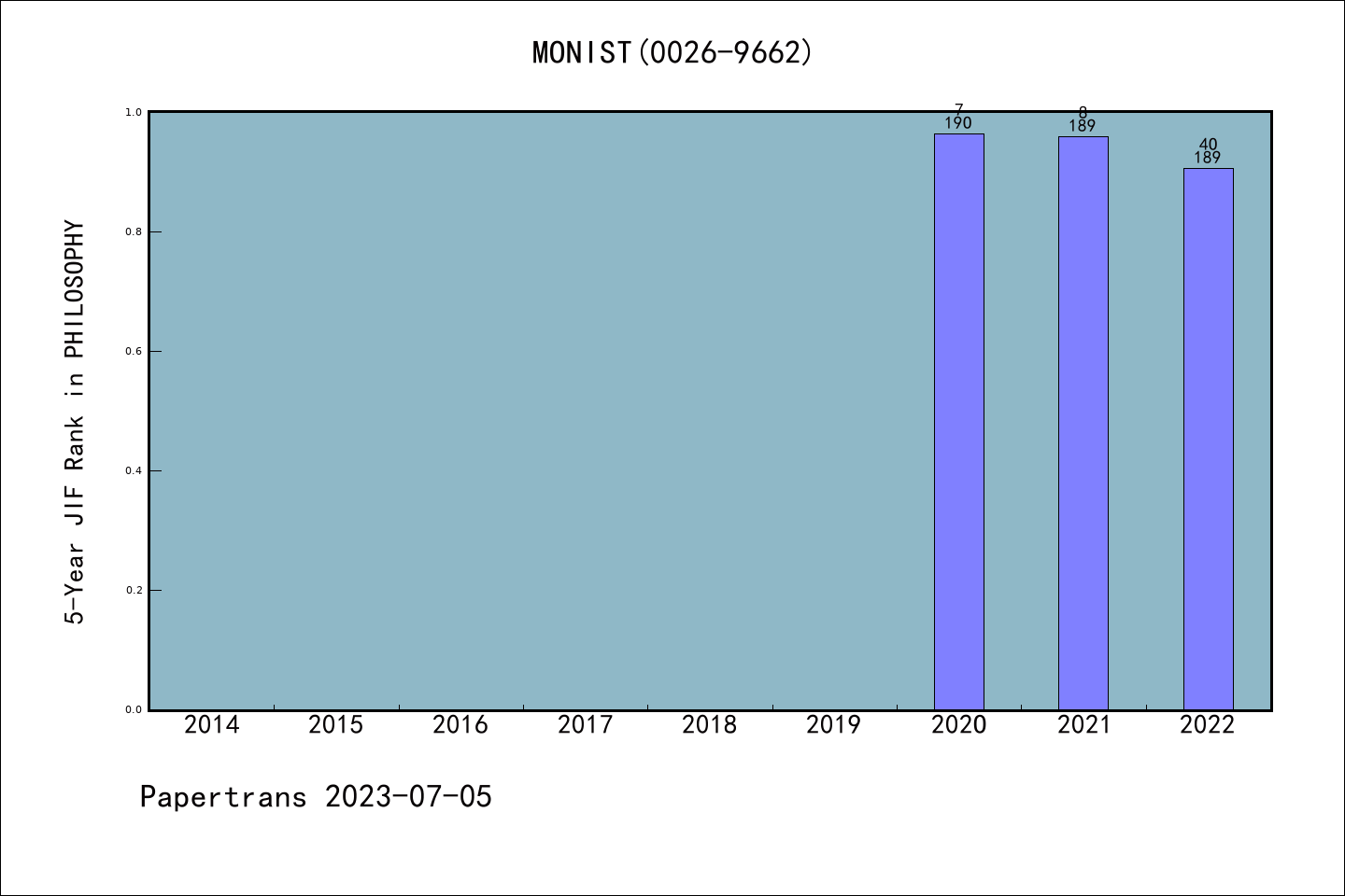AHCI期刊MONIST历年拒稿占比