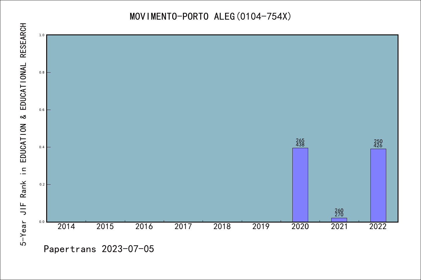 SSCI期刊Movimento历年拒稿占比