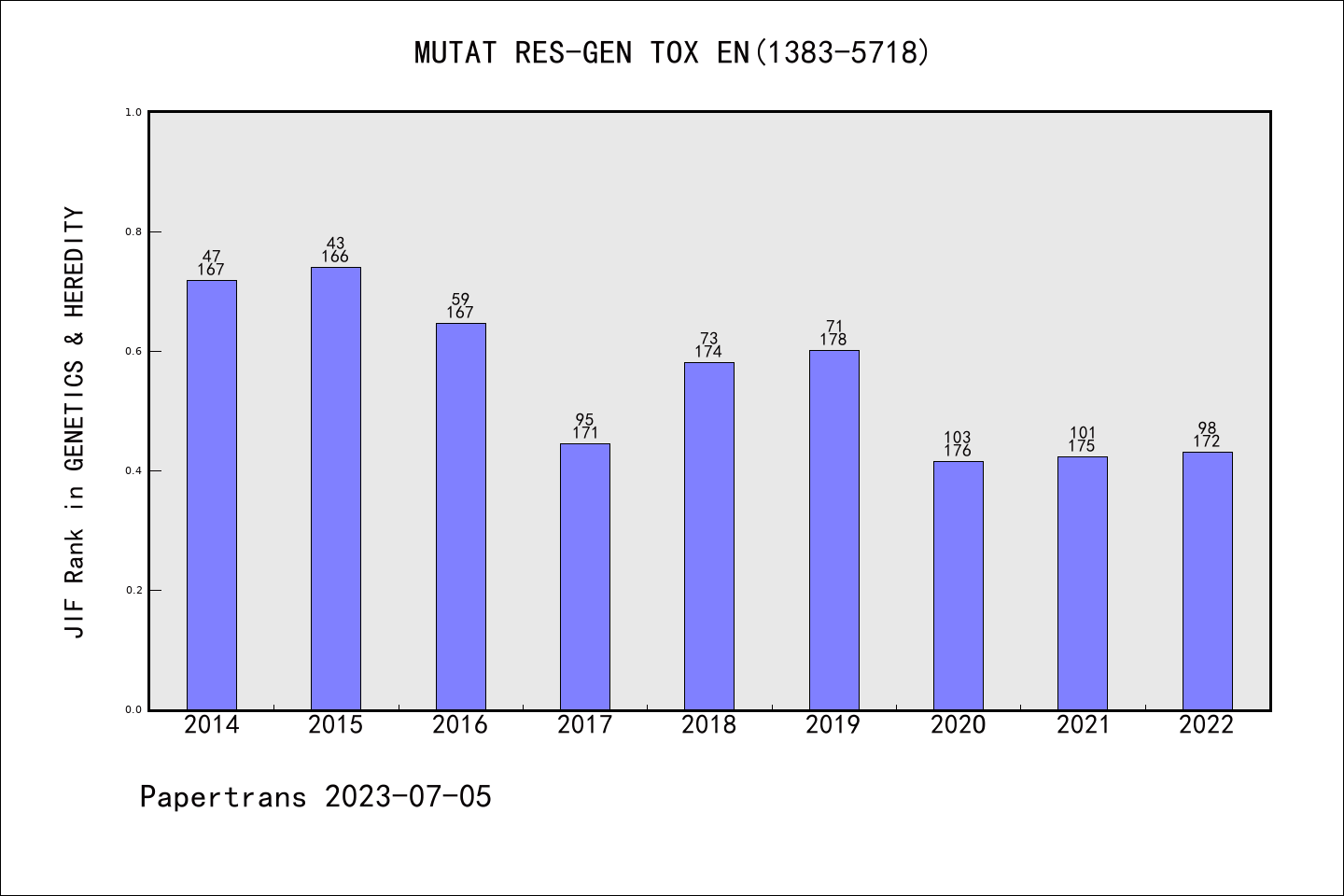 MUTAT RES-GEN TOX EN图表质量排名@SCIE遗传学