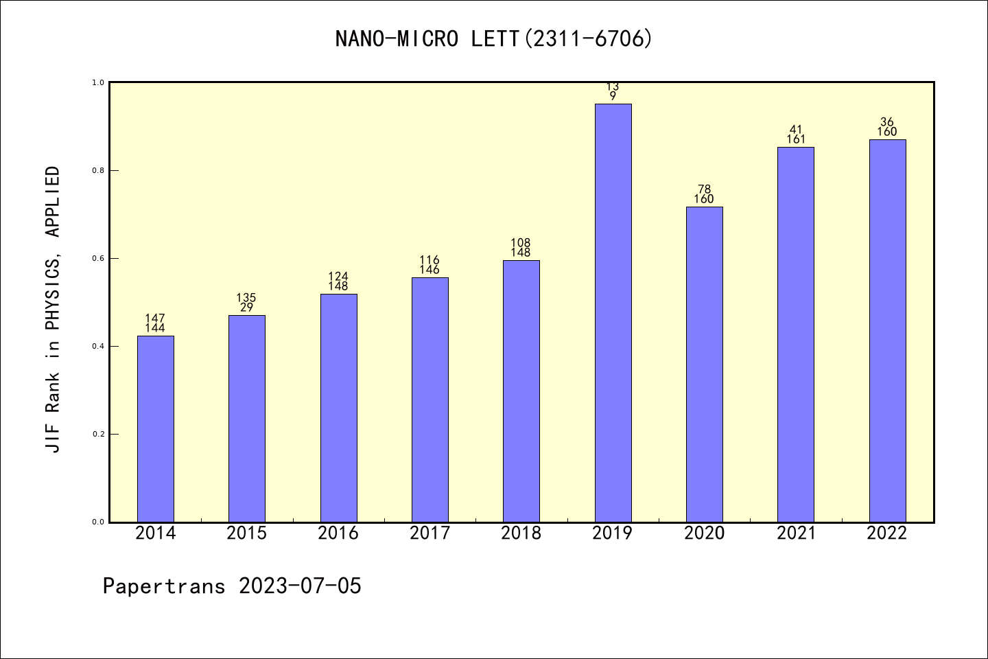 NANO-MICRO LETT图表质量排名@SCIE物理,应用