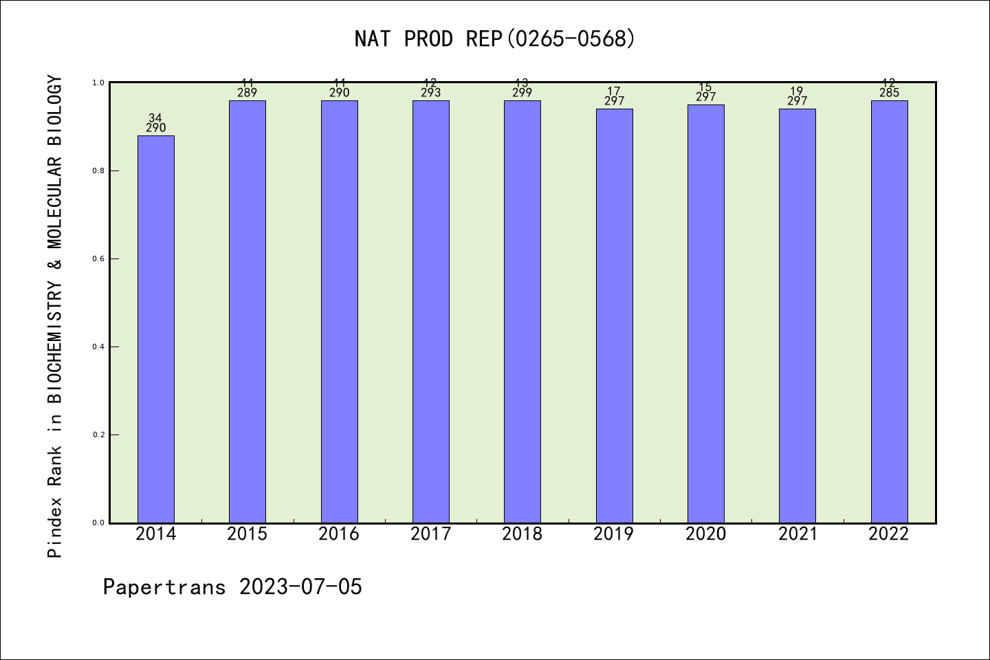 NATURAL PRODUCT REPORTS派博系数(Pindex)学科排名@SCIE生物化学与分子生物学