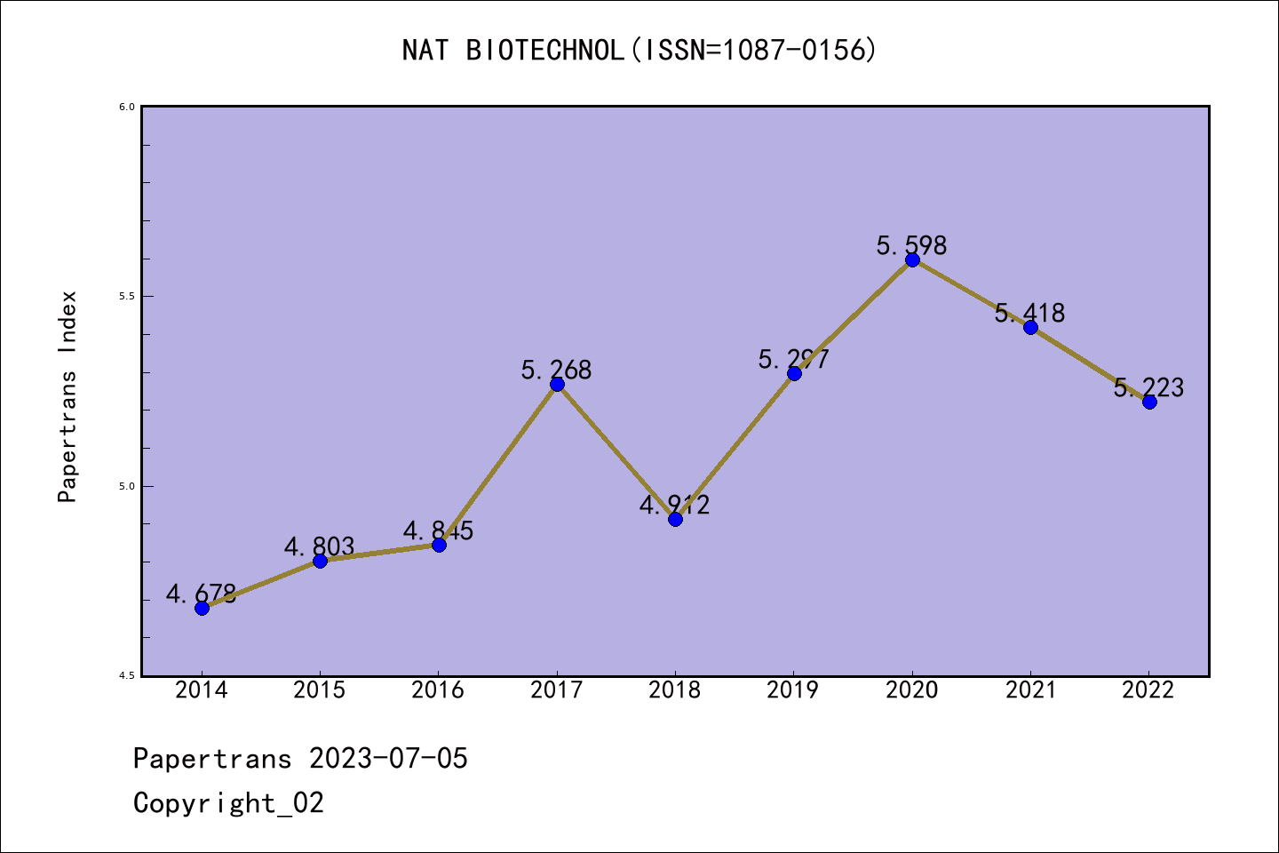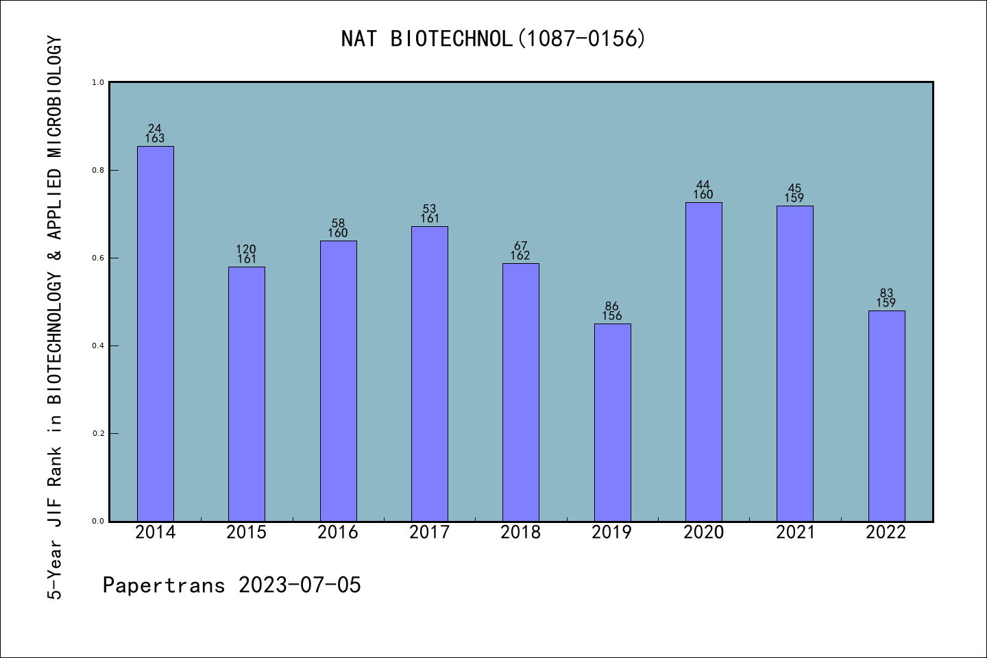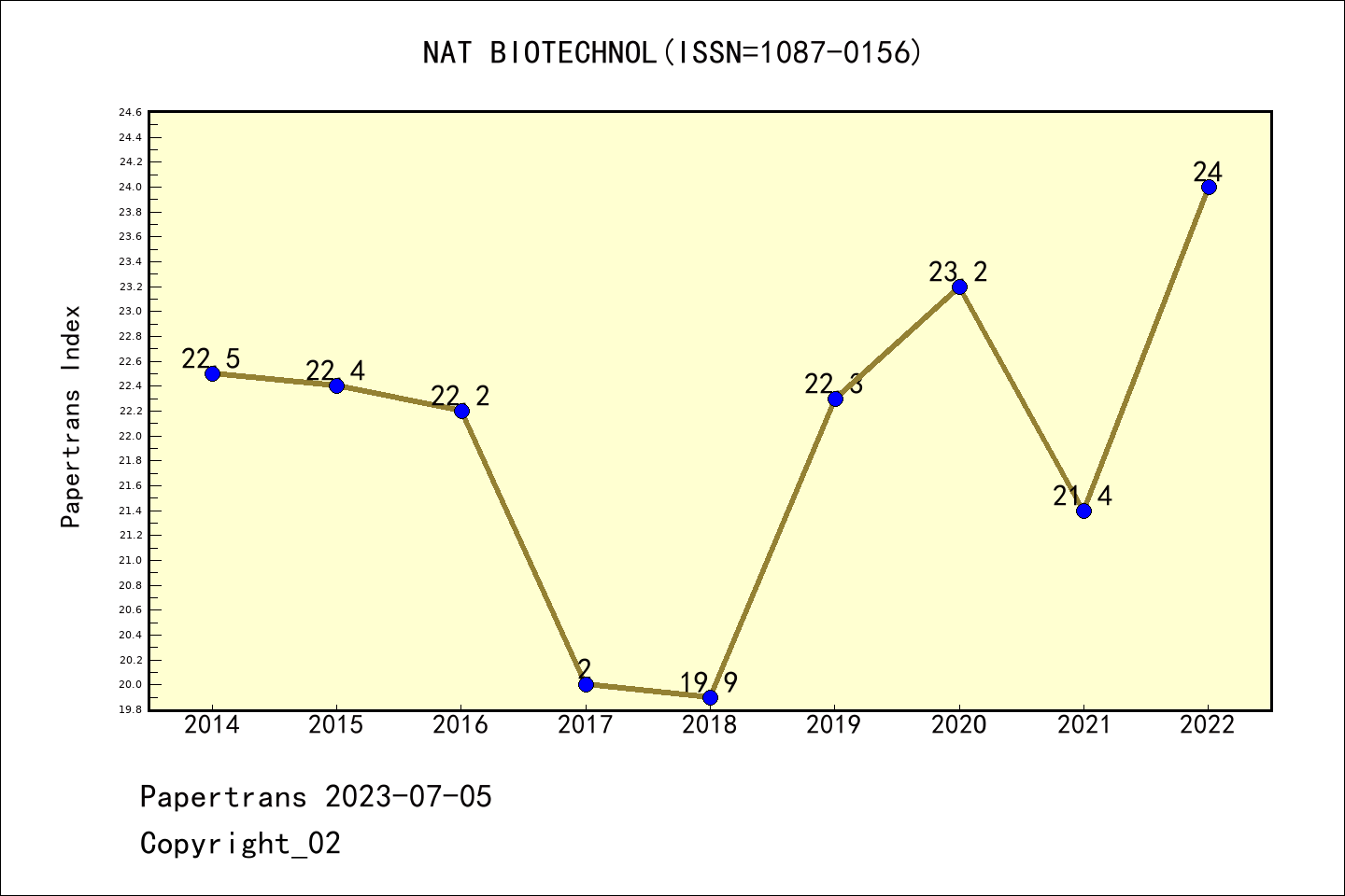SCIE期刊NATURE BIOTECHNOLOGY历年派博系数(Pindex)