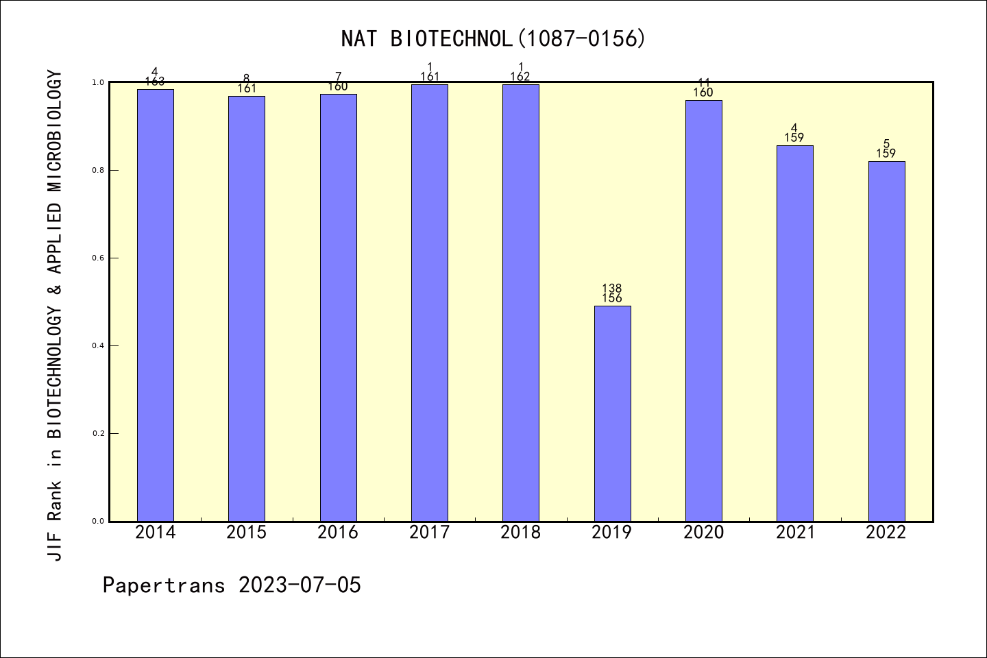 NATURE BIOTECHNOLOGY拒稿率学科排名@SCIE生物技术与应用微生物学