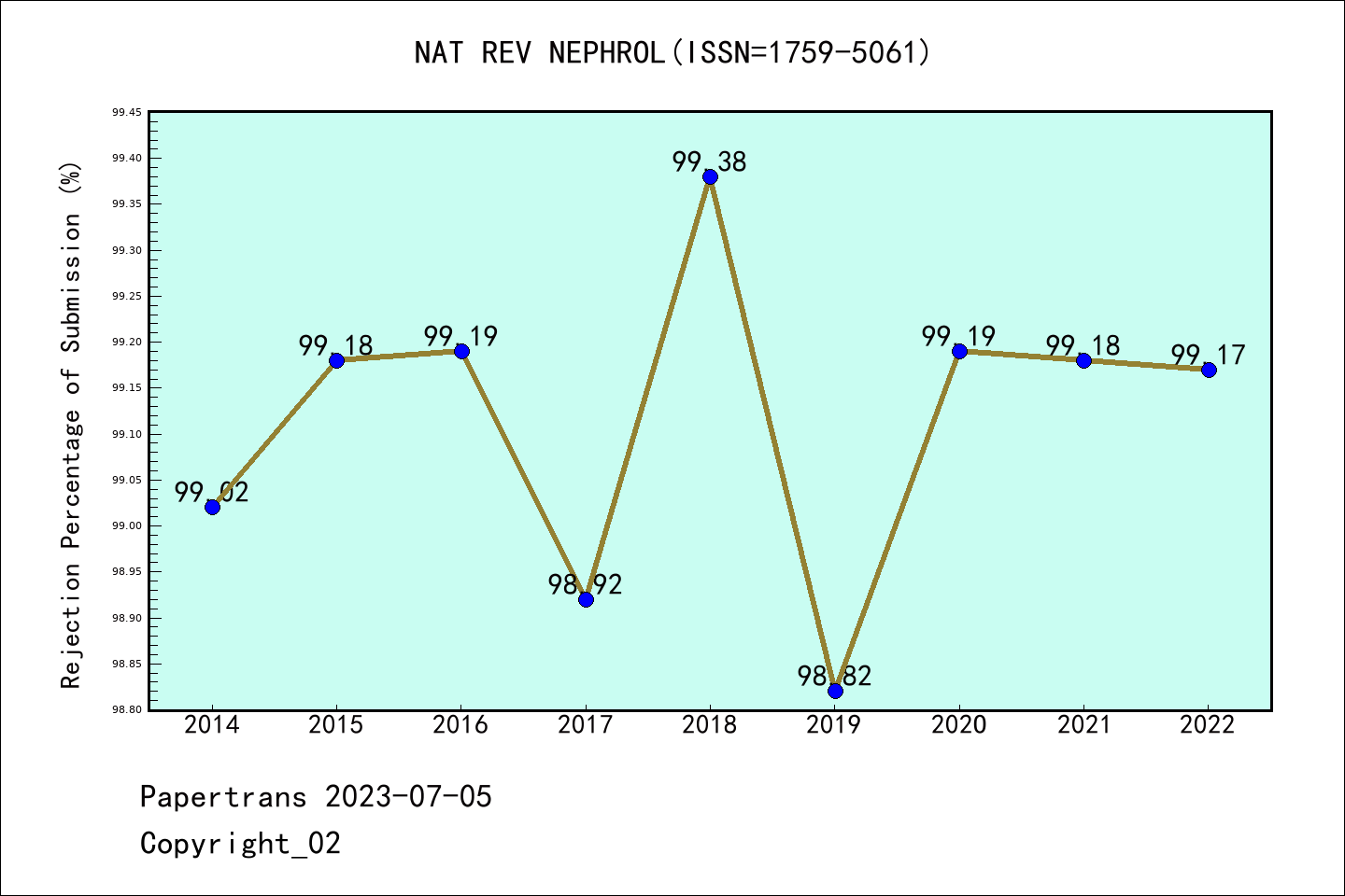 SCIE期刊Nature Reviews Nephrology历年拒稿占比