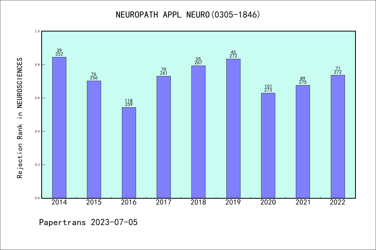 SCIE期刊NEUROPATHOLOGY AND APPLIED NEUROBIOLOGY历年拒稿占比