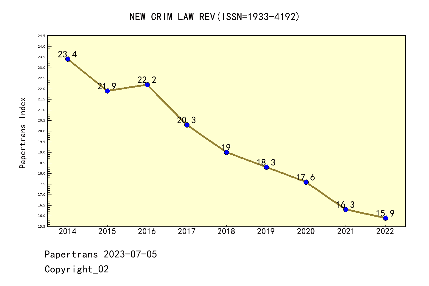 ESCI期刊New Criminal Law Review历年派博系数(Pindex)