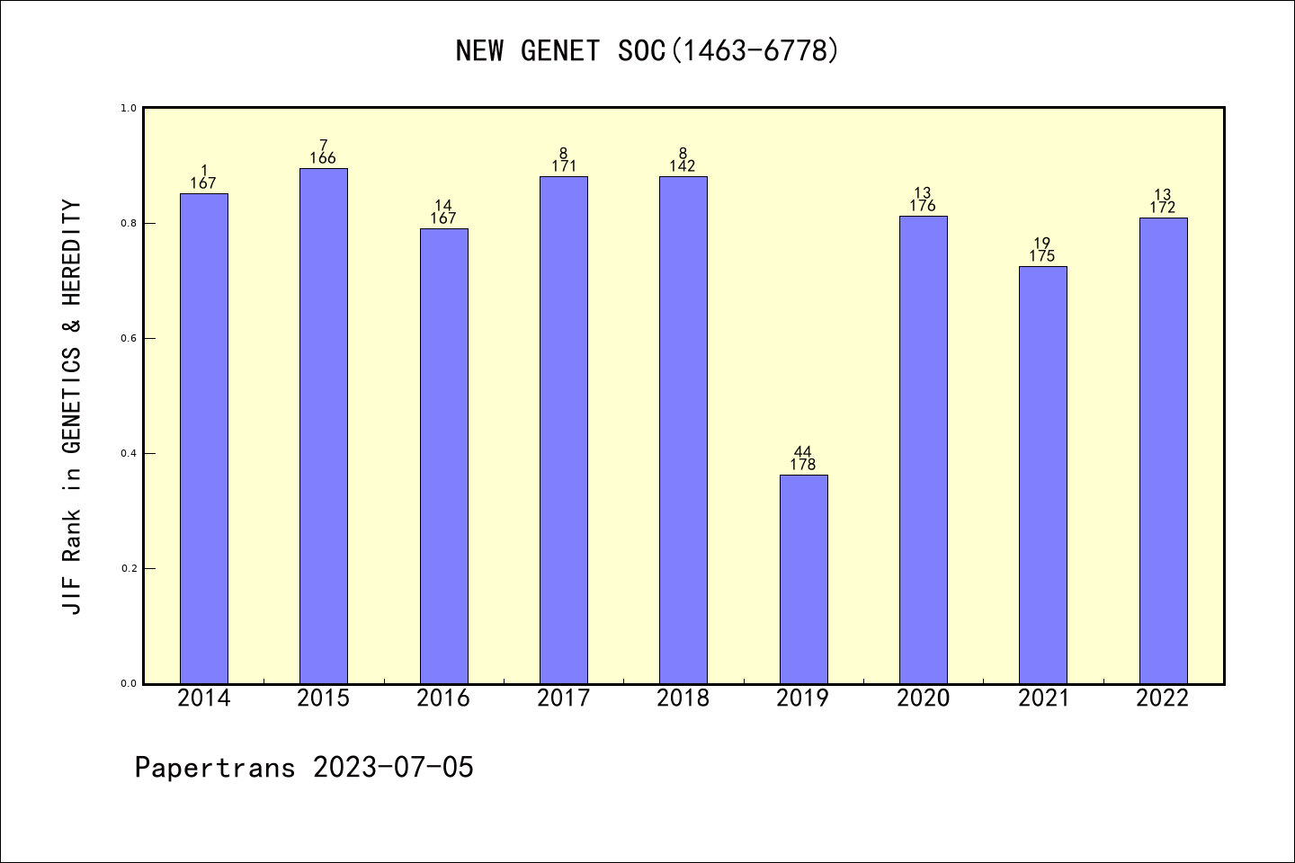 NEW GENET SOC图表质量排名@SCIE遗传学