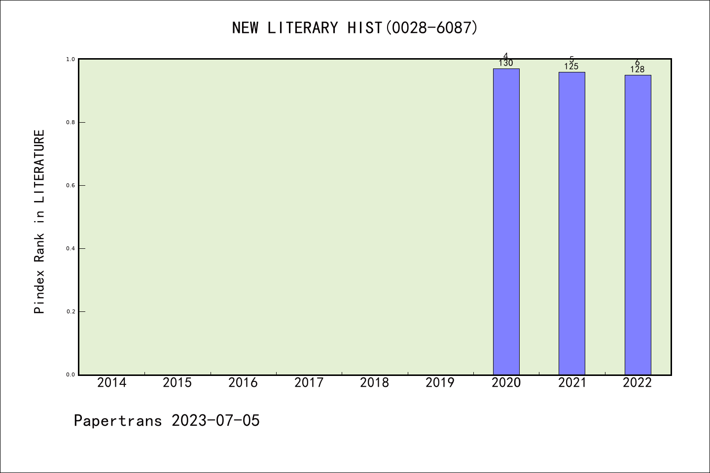AHCI期刊NEW LITERARY HISTORY历年派博系数(Pindex)