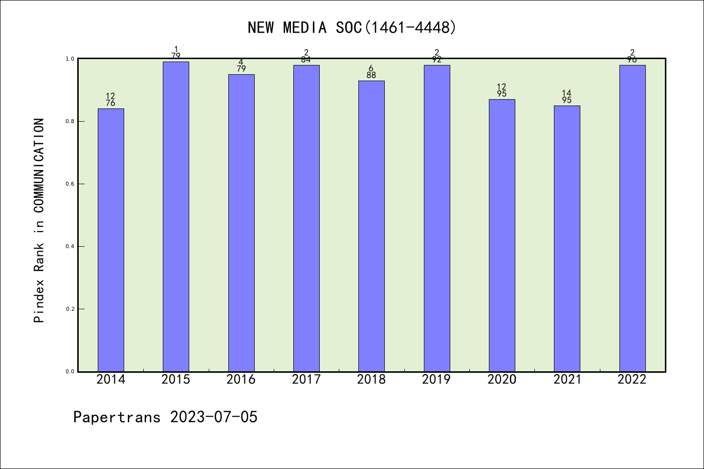 SSCI期刊NEW MEDIA & SOCIETY历年派博系数(Pindex)