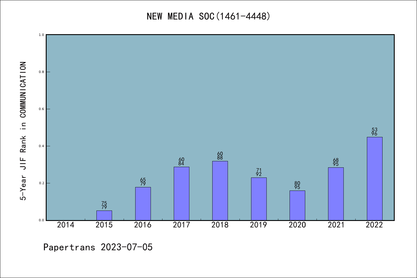 NEW MEDIA & SOCIETY派博系数(Pindex)学科排名@SSCI通信
