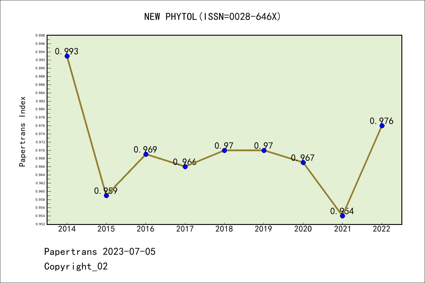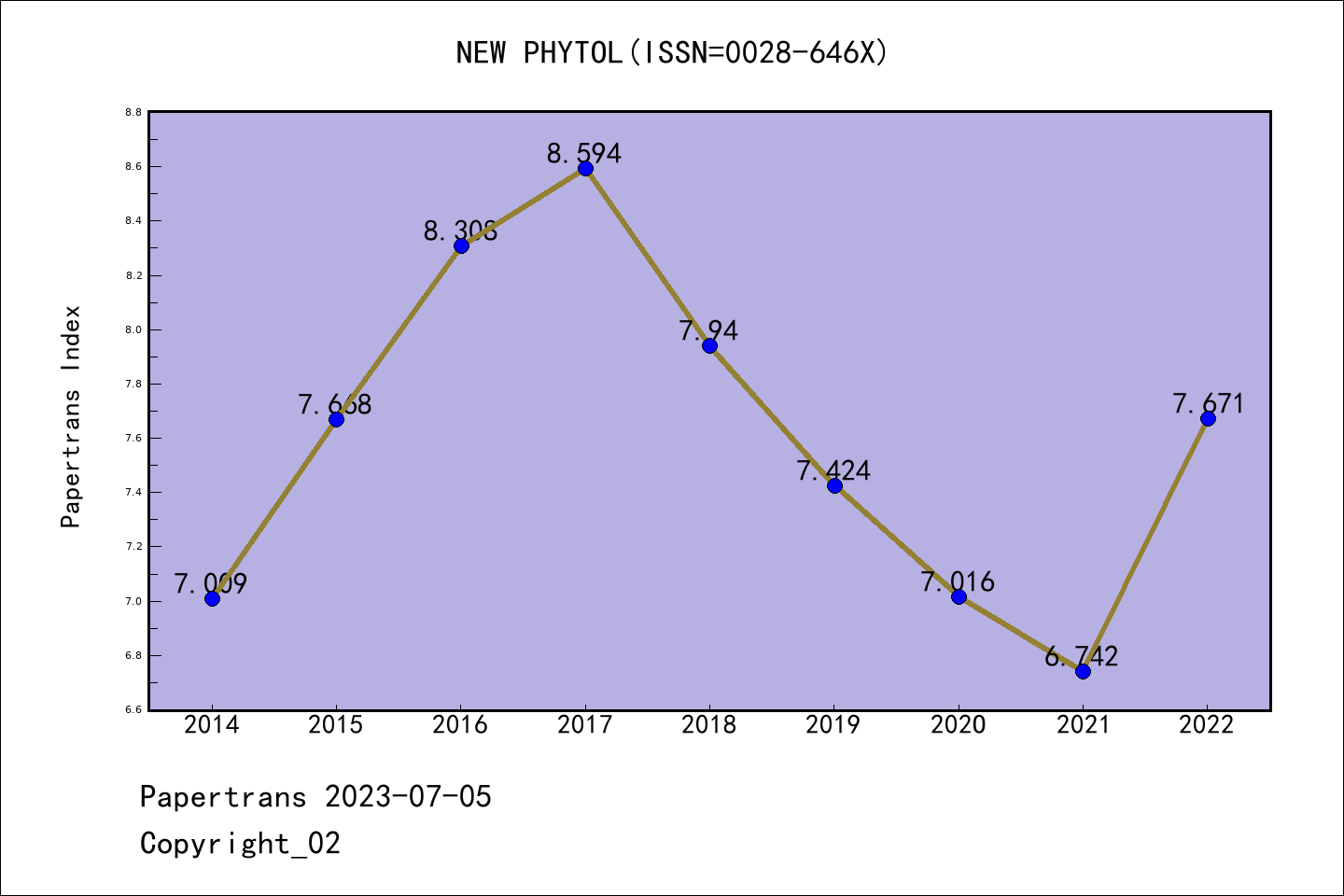 SCIE期刊NEW PHYTOLOGIST历年派博系数(Pindex)