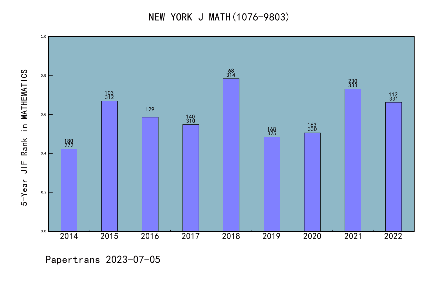 SCIE期刊New York Journal of Mathematics历年派博系数(Pindex)