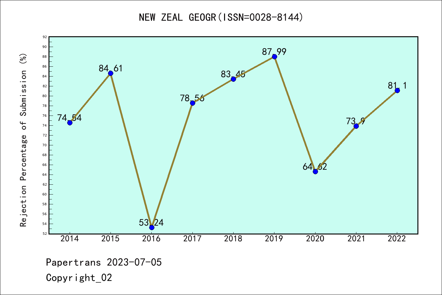 SSCI期刊New Zealand Geographer历年拒稿占比