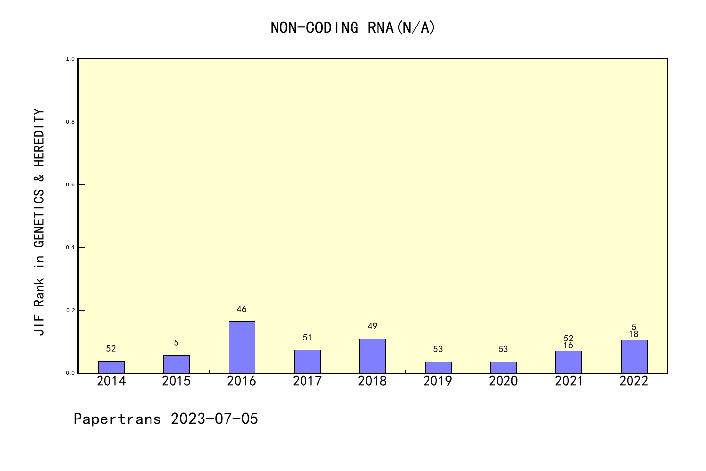 Non-Coding RNA派博系数(Pindex)学科排名@ESCI遗传学与遗传