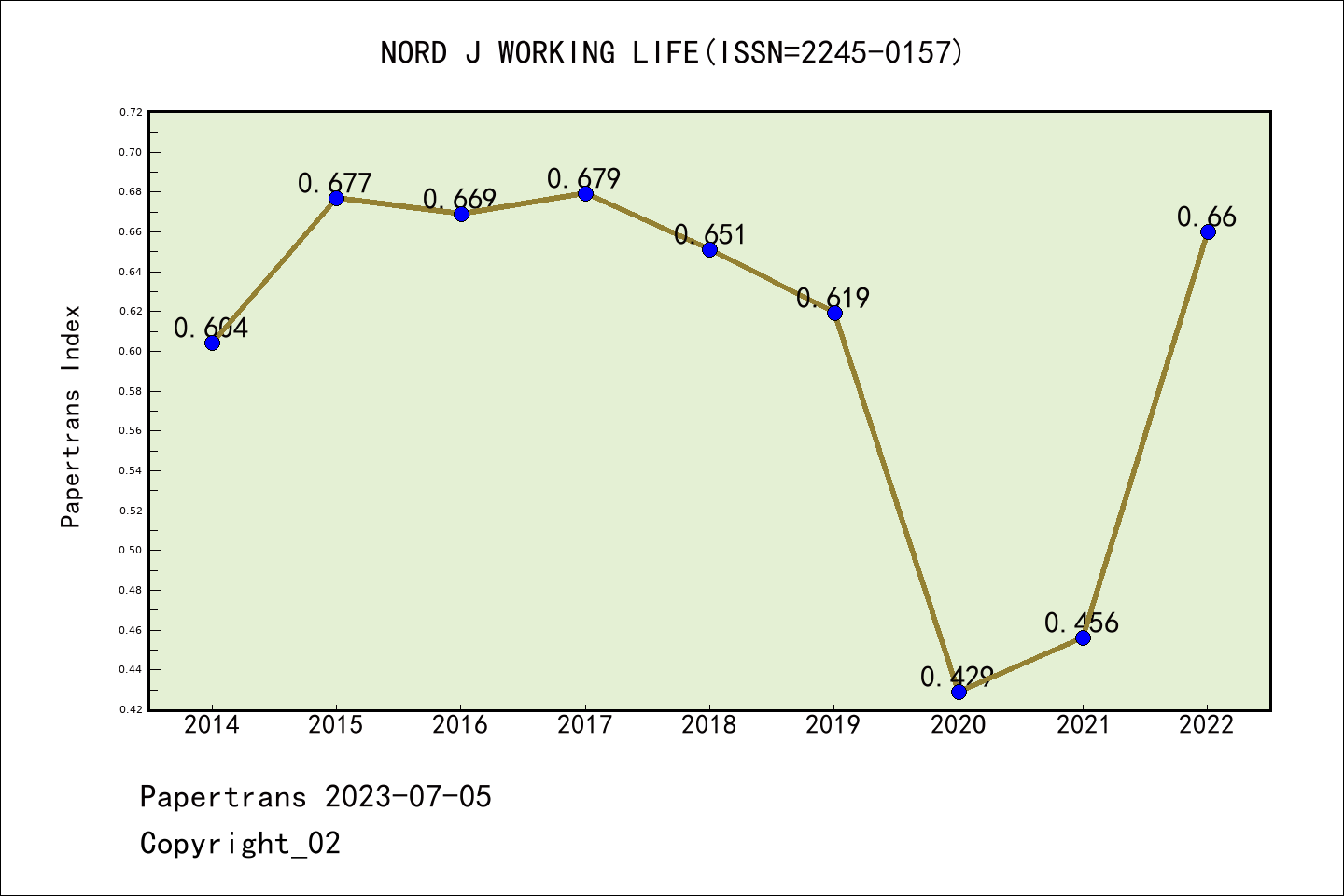 ESCI期刊Nordic Journal of Working Life Studies历年派博系数(Pindex)