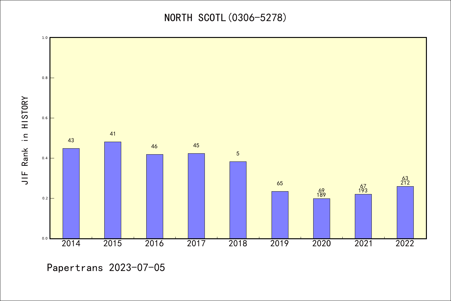 Northern Scotland派博系数(Pindex)学科排名@ESCI历史
