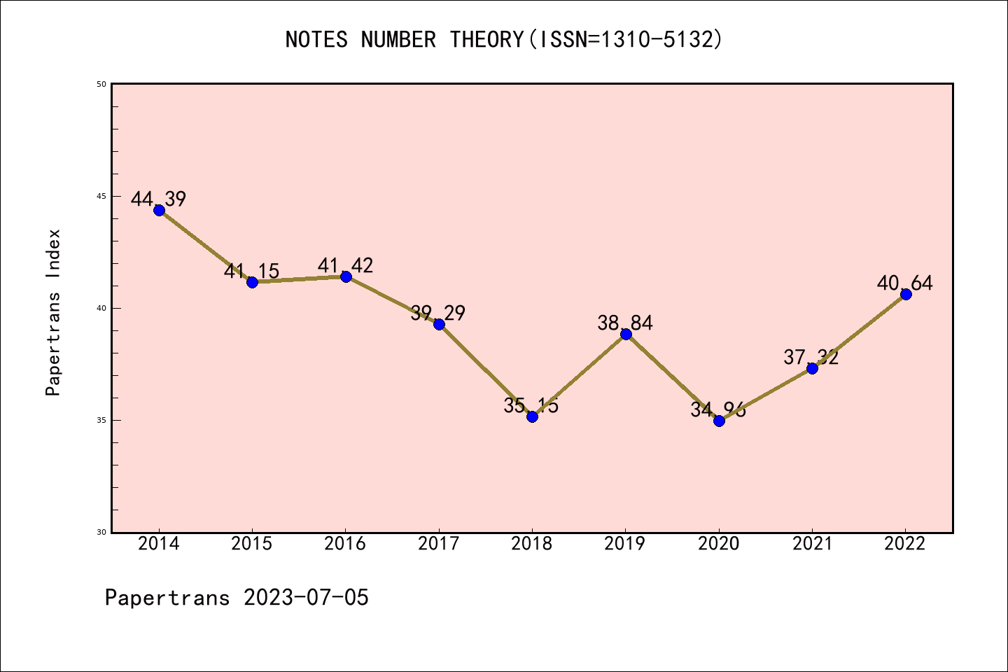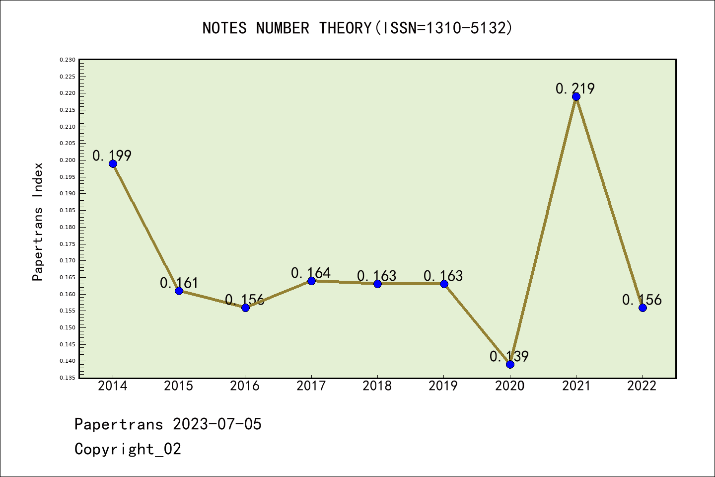 ESCI期刊Notes on Number Theory and Discrete Mathematics历年派博系数(Pindex)