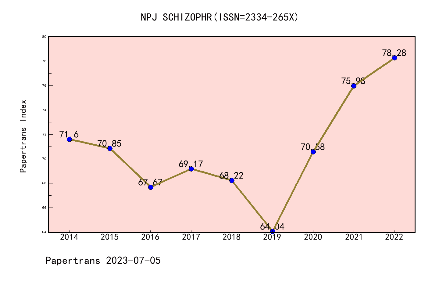 SCIE期刊NPJ Schizophrenia历年派博系数(Pindex)