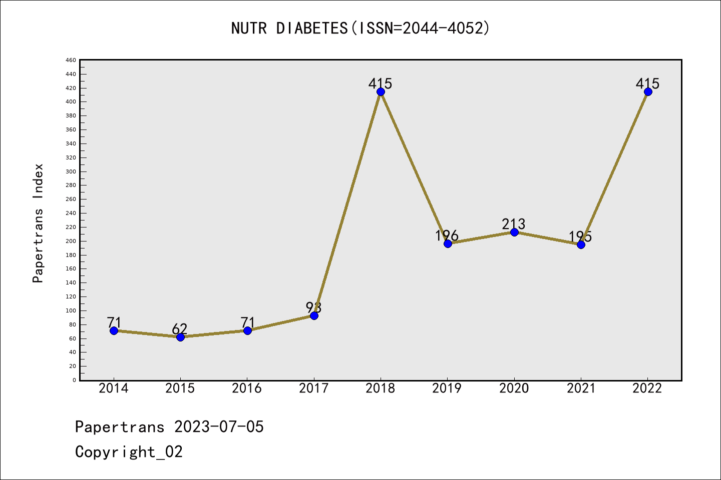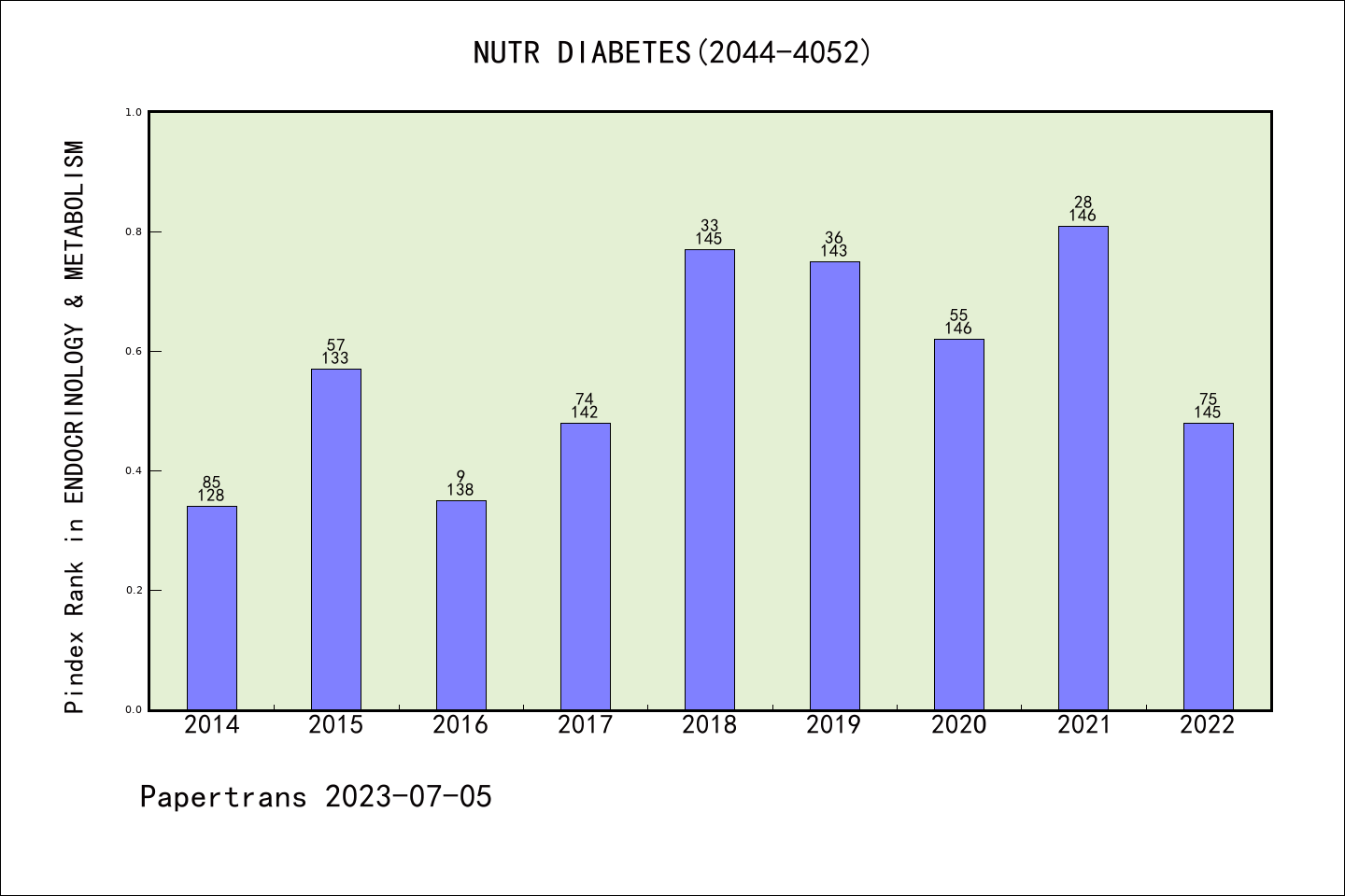 SCIE期刊Nutrition & Diabetes历年派博系数(Pindex)