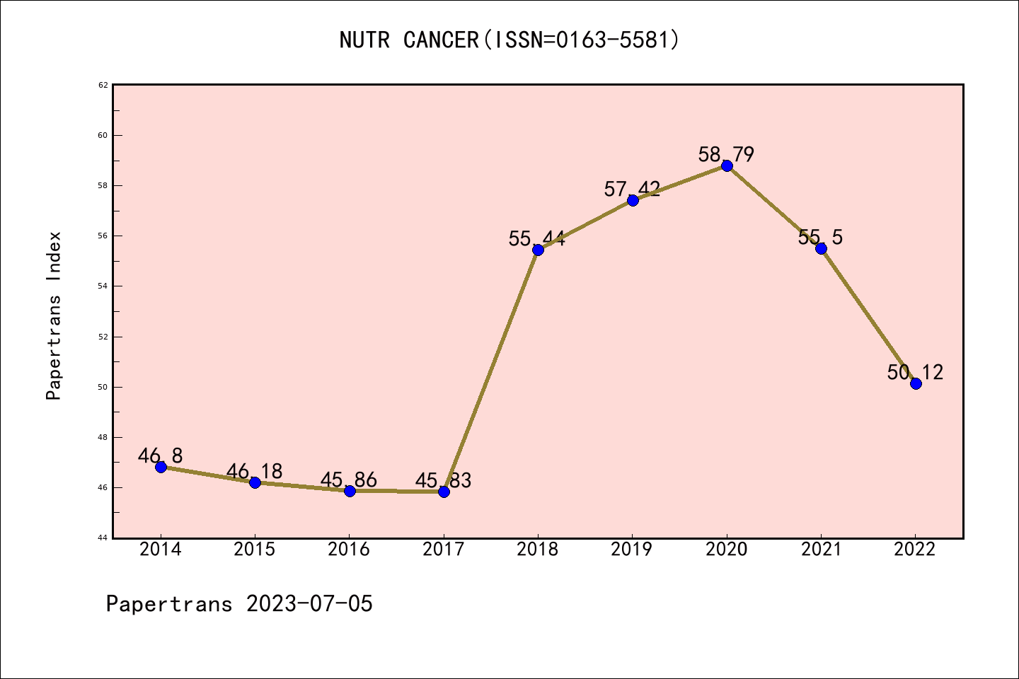 SCIE期刊NUTRITION AND CANCER-AN INTERNATIONAL JOURNAL历年派博系数(Pindex)