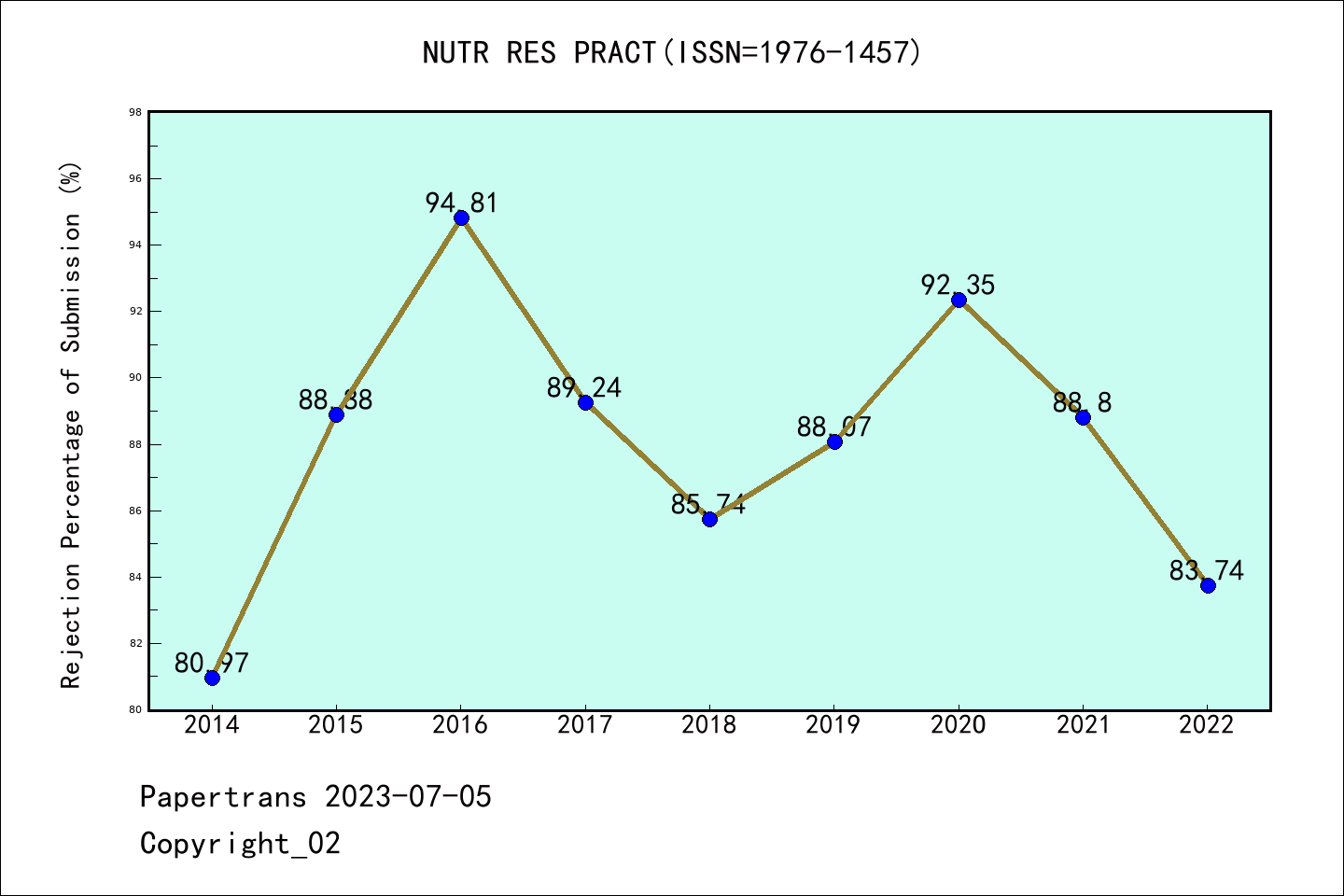 SCIE期刊Nutrition Research and Practice历年拒稿占比