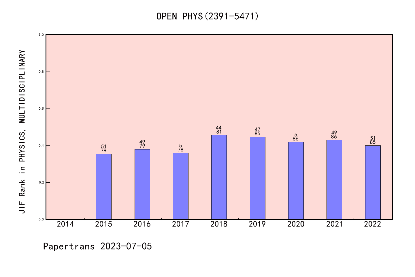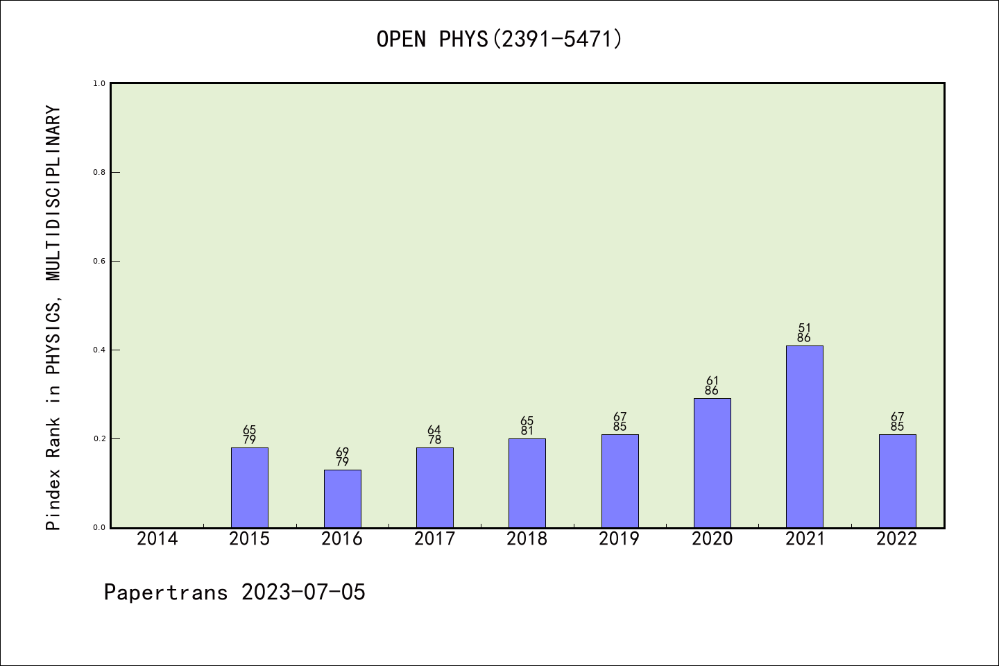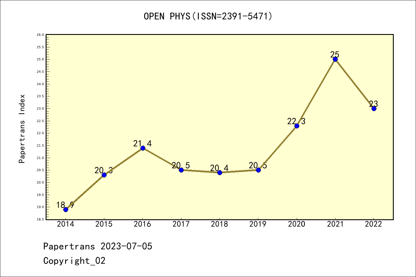 SCIE期刊Open Physics历年派博系数(Pindex)