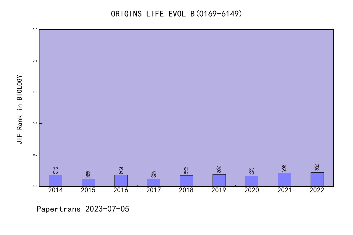 ORIGINS LIFE EVOL B图表质量排名@SCIE生物学