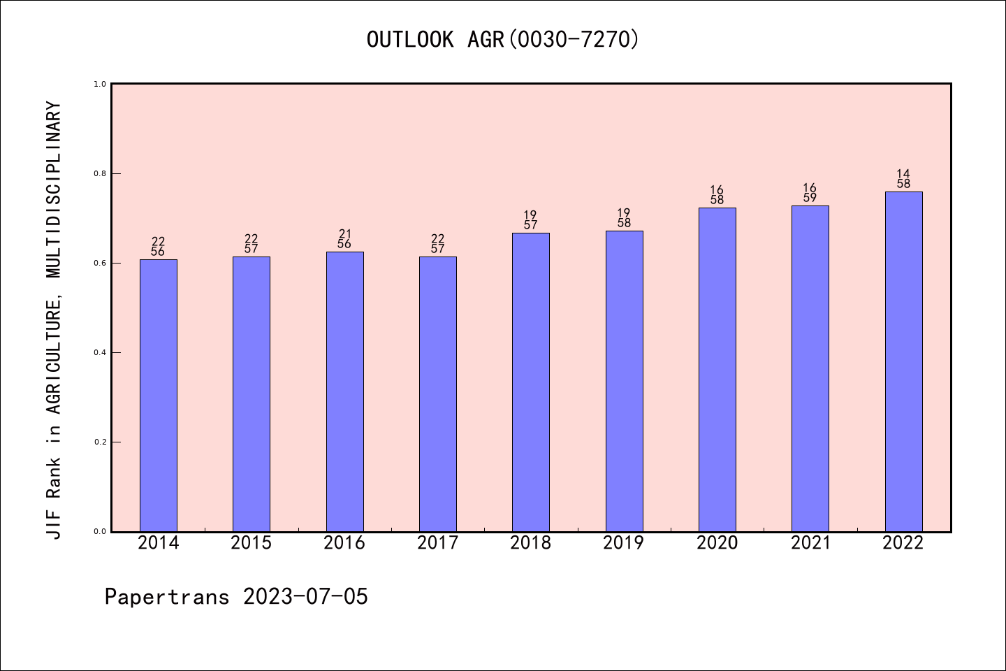 OUTLOOK ON AGRICULTURE派博系数(Pindex)学科排名@SCIE农业及交叉学科