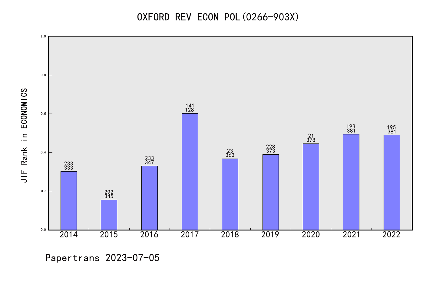 OXFORD REVIEW OF ECONOMIC POLICY派博系数(Pindex)学科排名@SSCI经济学