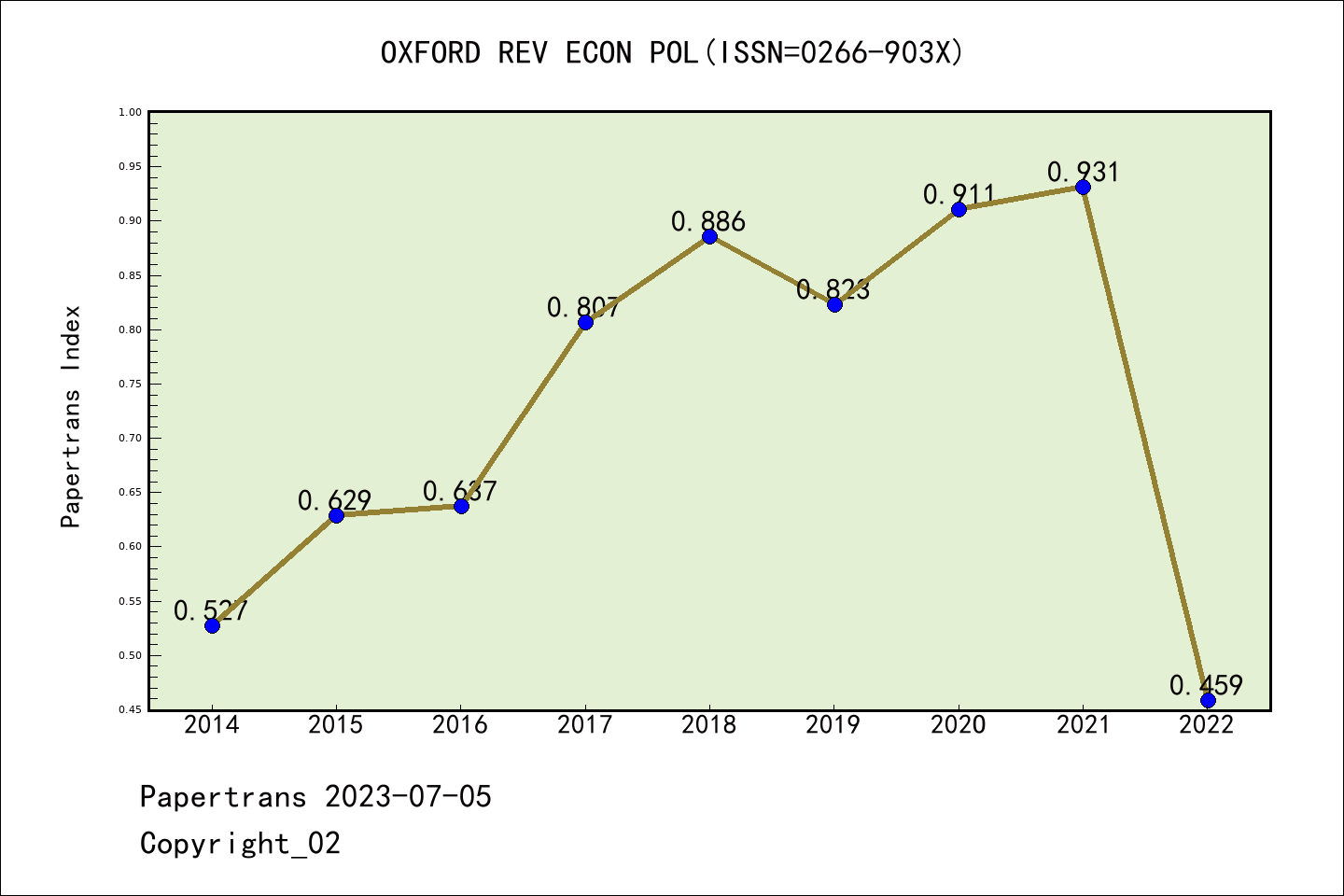 SSCI期刊OXFORD REVIEW OF ECONOMIC POLICY历年派博系数(Pindex)