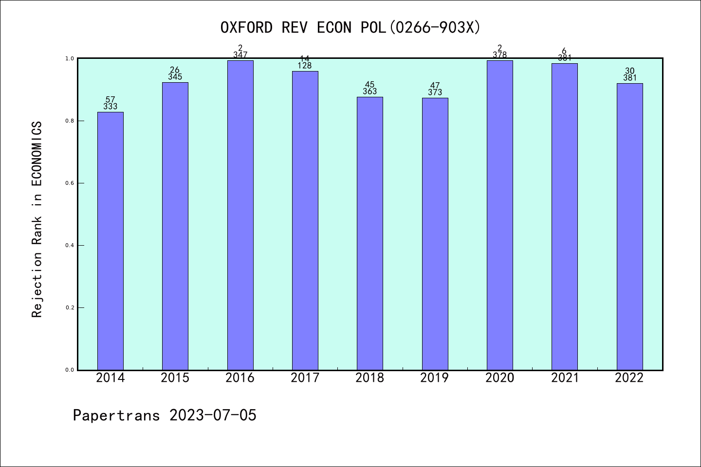SSCI期刊OXFORD REVIEW OF ECONOMIC POLICY历年拒稿占比